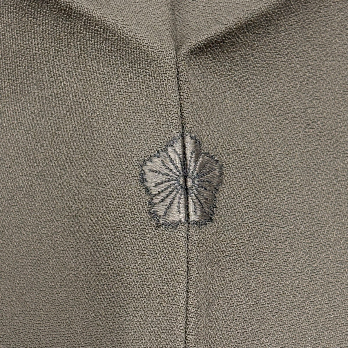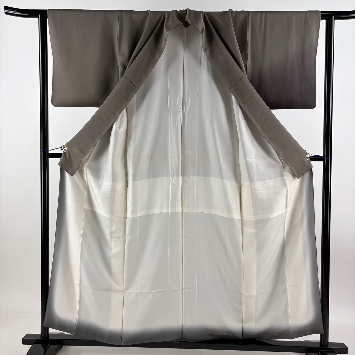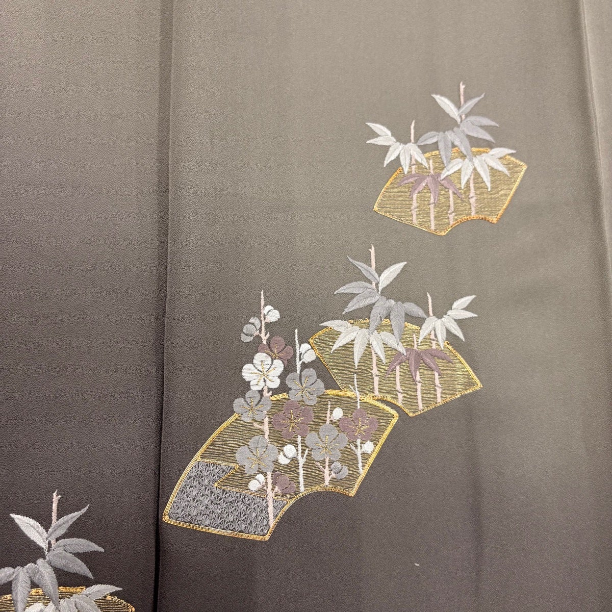付下げ 身丈166cm 裄丈64.5cm M 袷 堅牢草木染 扇面 草花 刺繍 灰色 正絹 秀品