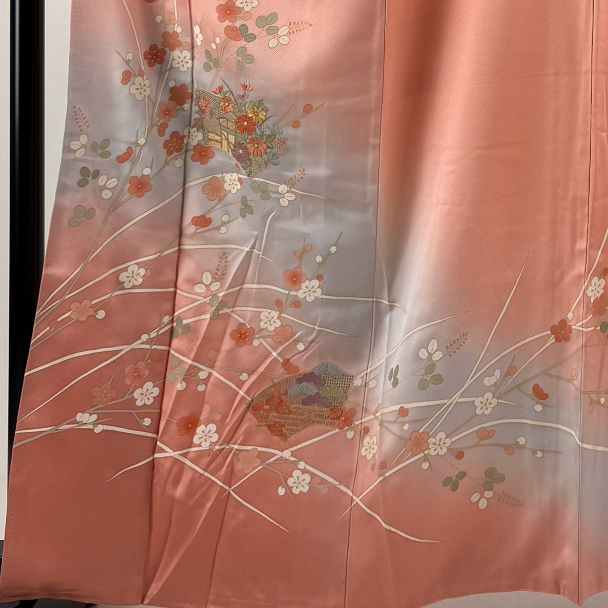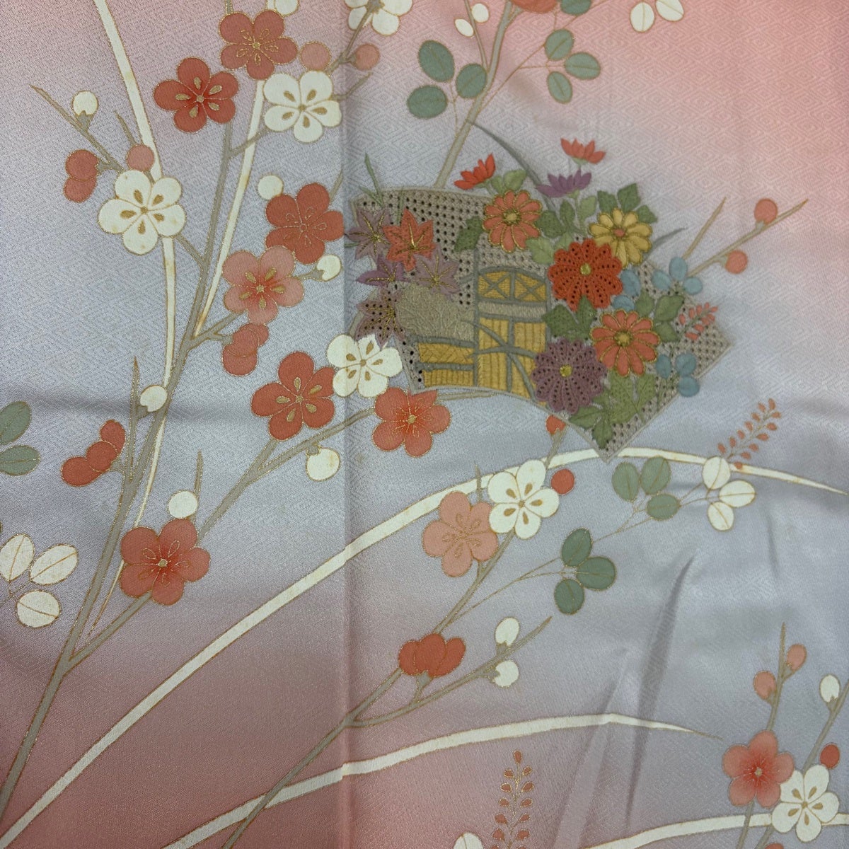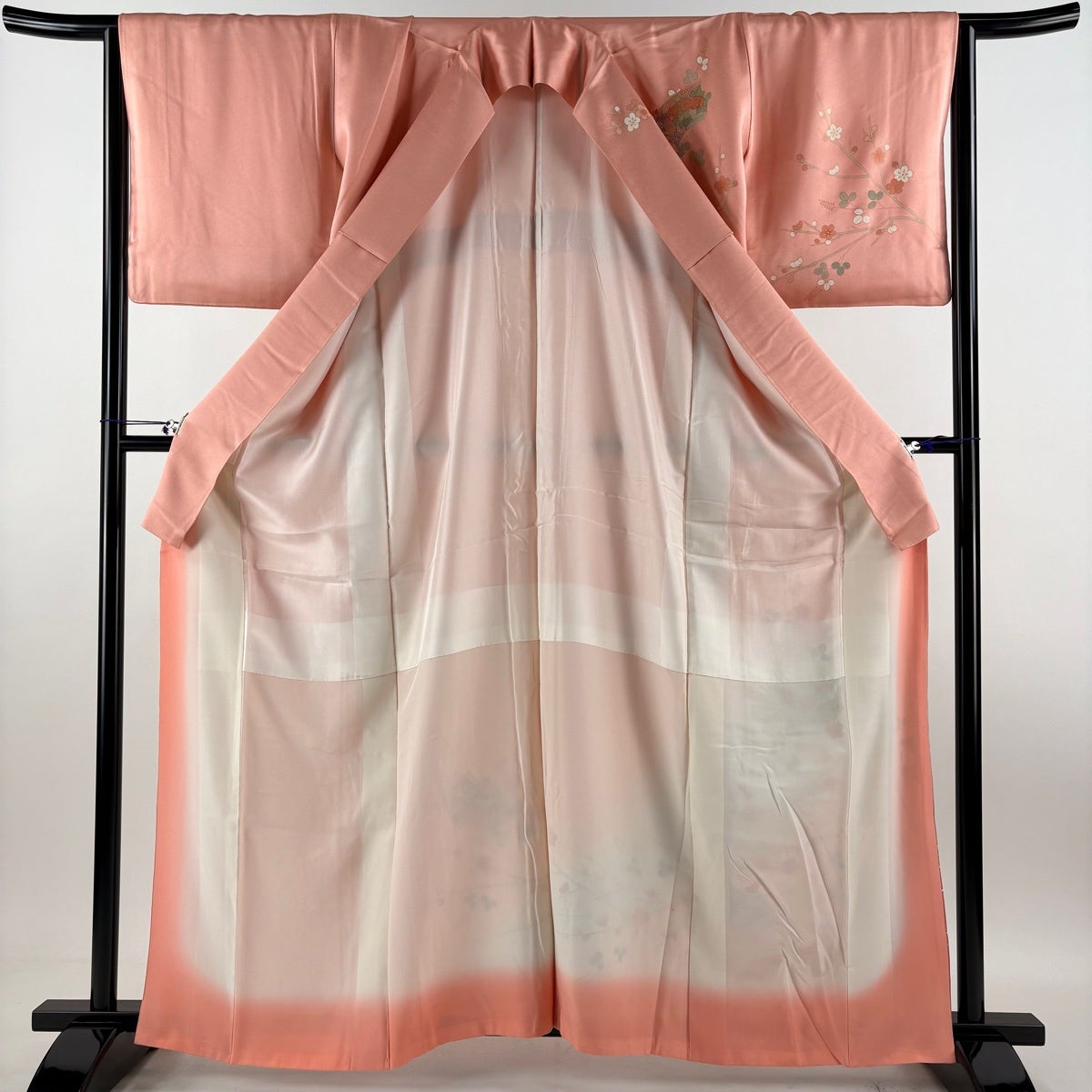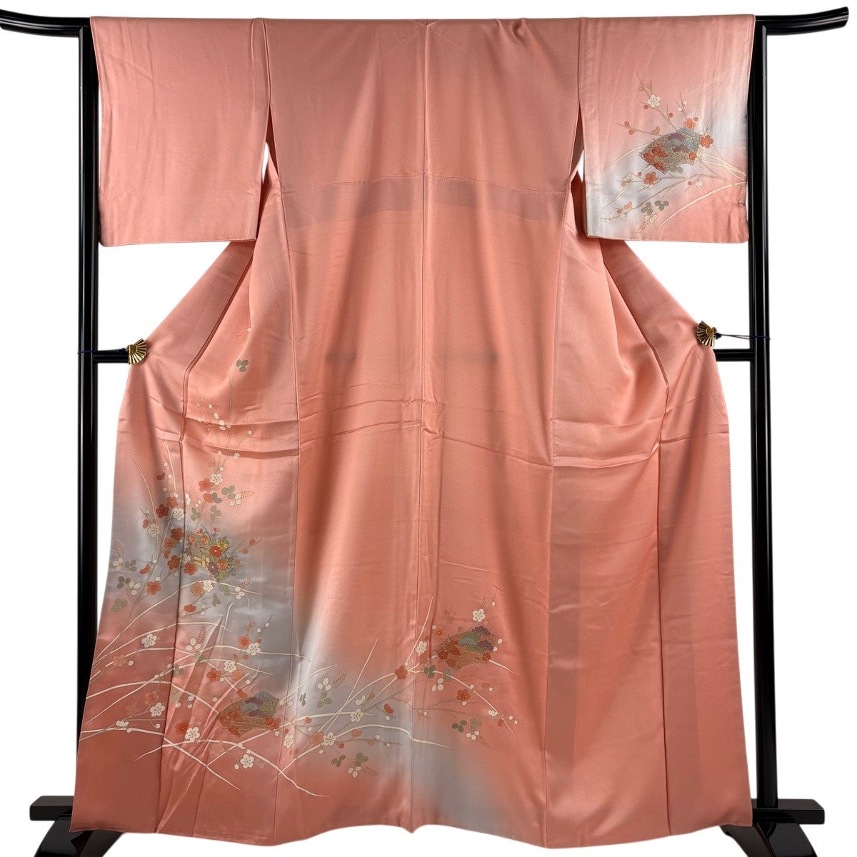 訪問着 身丈159cm 裄丈65cm M 袷 扇面 枝花 金彩 染め分け ピンク 正絹 秀品