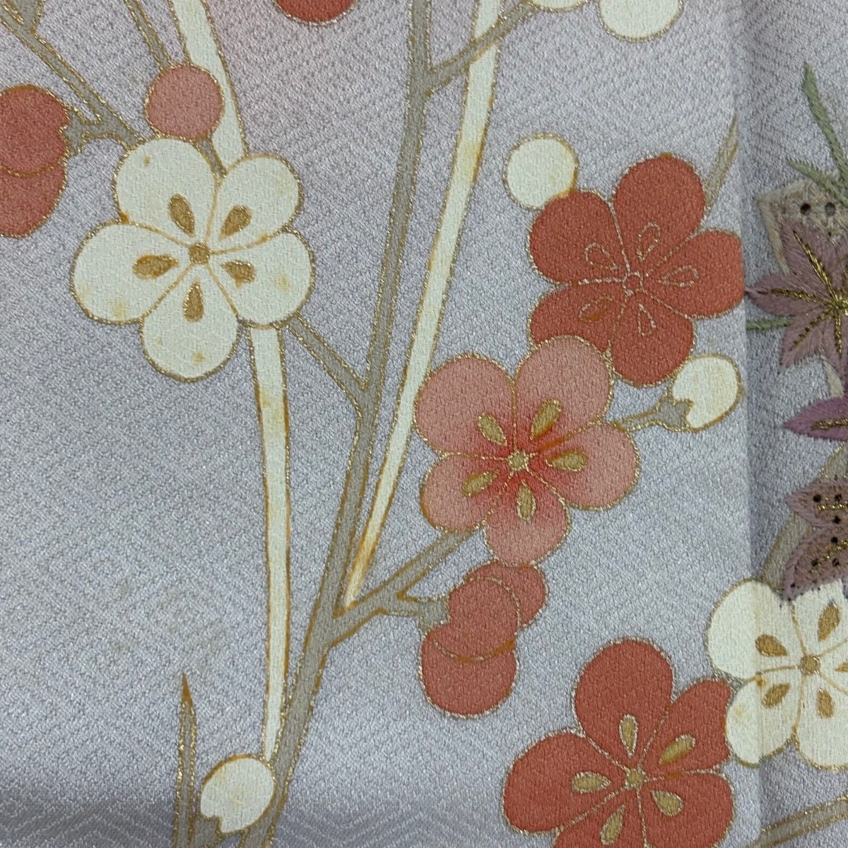訪問着 身丈162cm 裄丈66.5cm M 袷 扇面 草花 金銀彩 ぼかし 灰紫 正絹 秀品