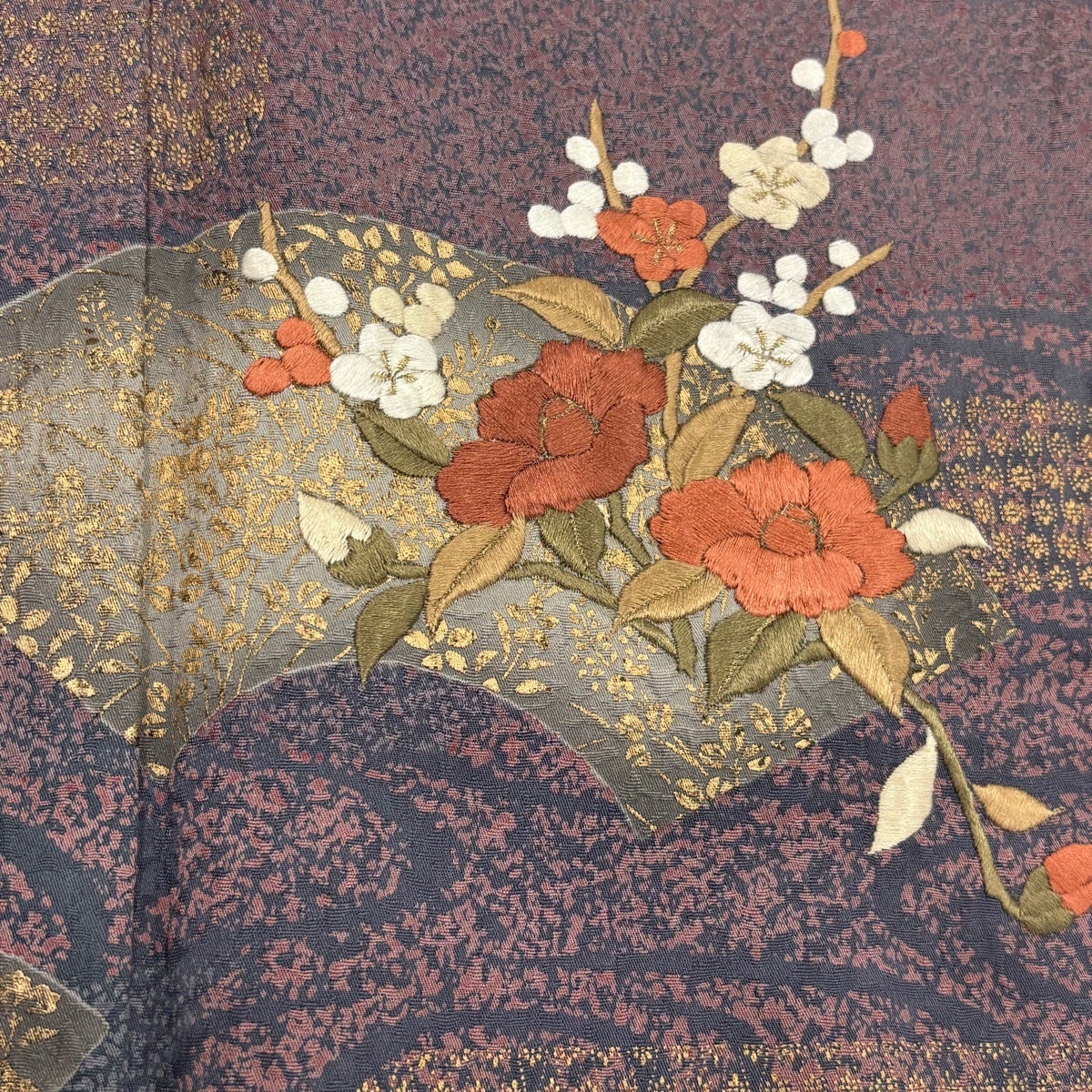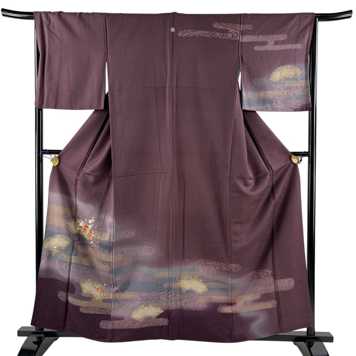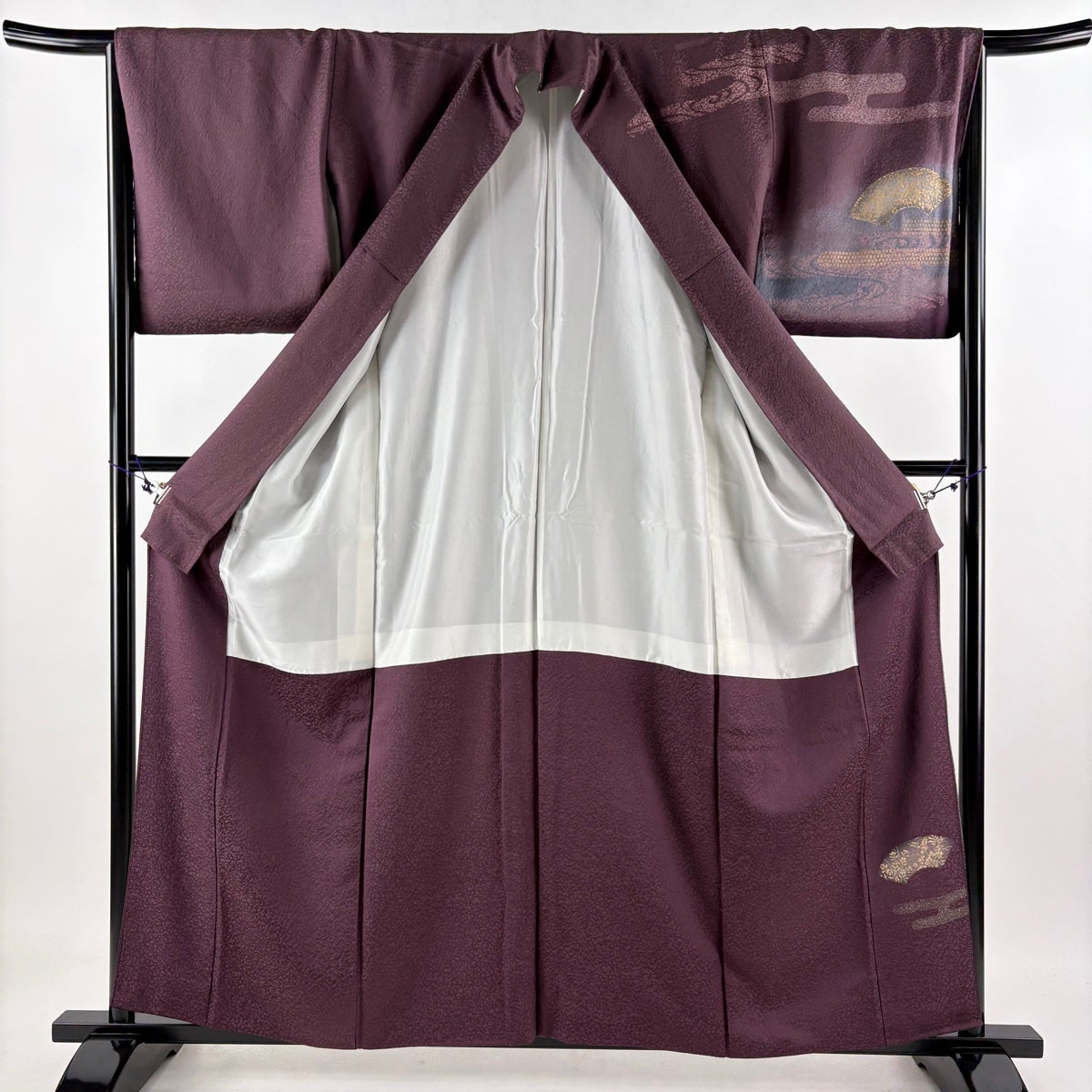 訪問着 身丈166cm 裄丈66.5cm M 袷 扇面 道長取り 金糸 金彩 薄小豆 正絹 秀品