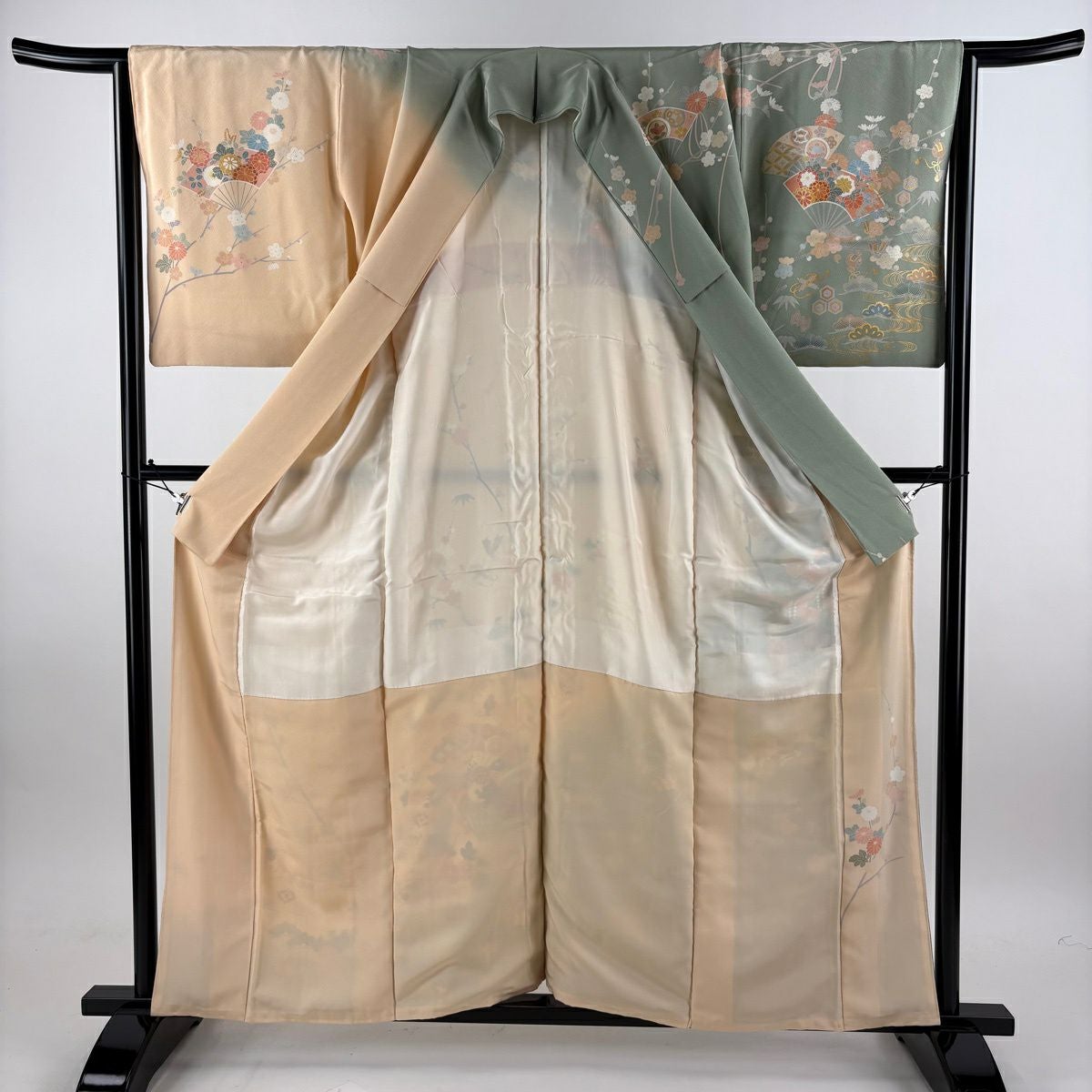 付下げ 身丈153cm 裄丈62cm S 袷 扇面 ヱ霞 刺繍 ぼかし ベージュ 正絹 秀品