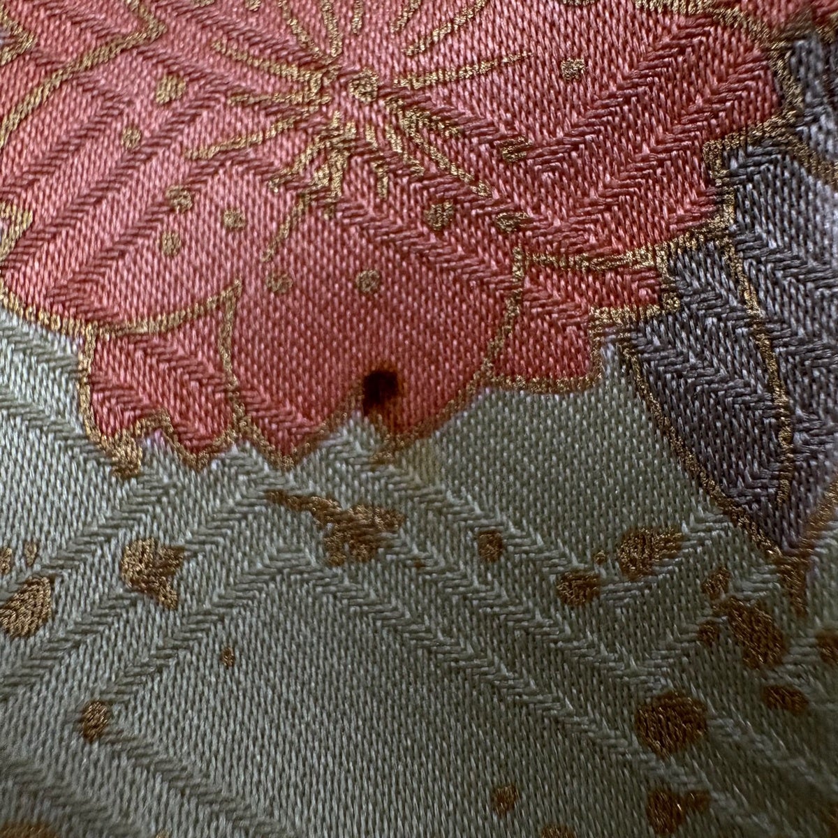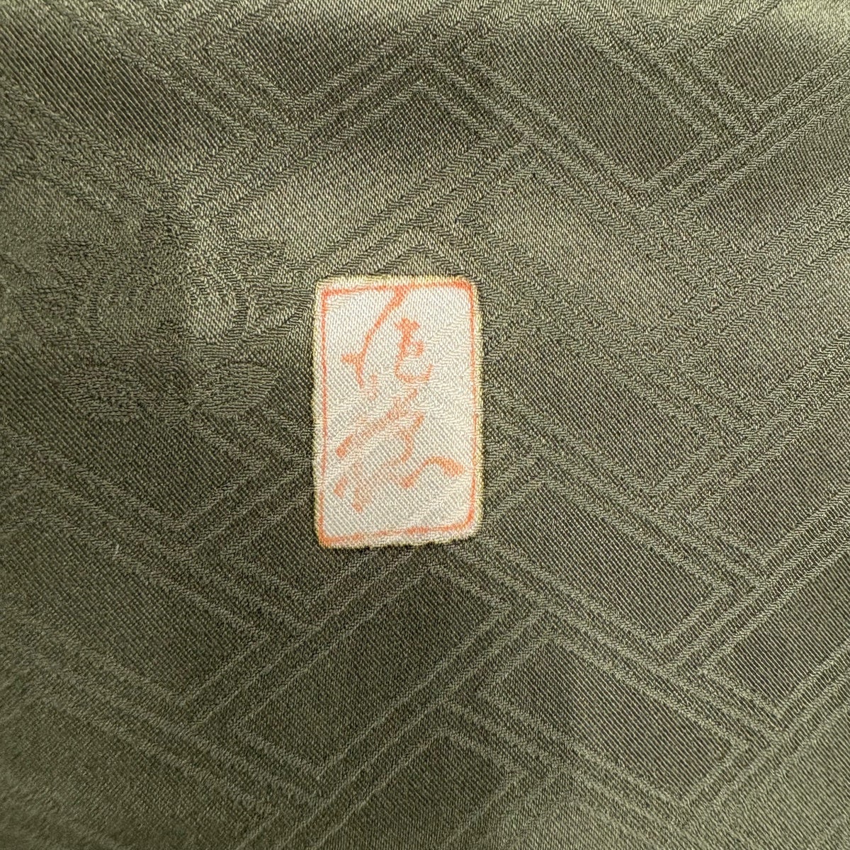 【美品】 袋帯 名品 川島織物 落款あり 関西仕立て 扇面 松 金銀糸 箔 灰緑 六通 正絹