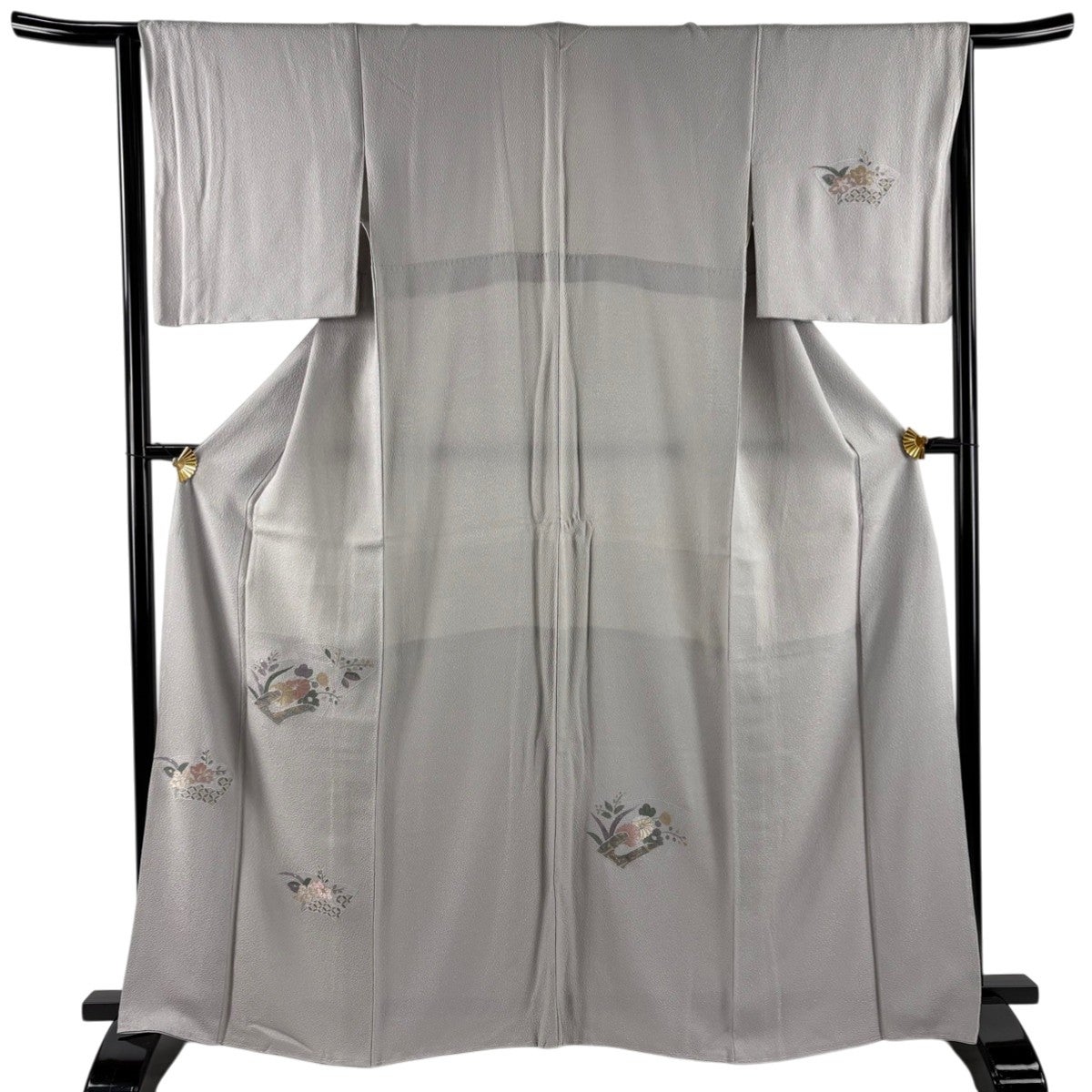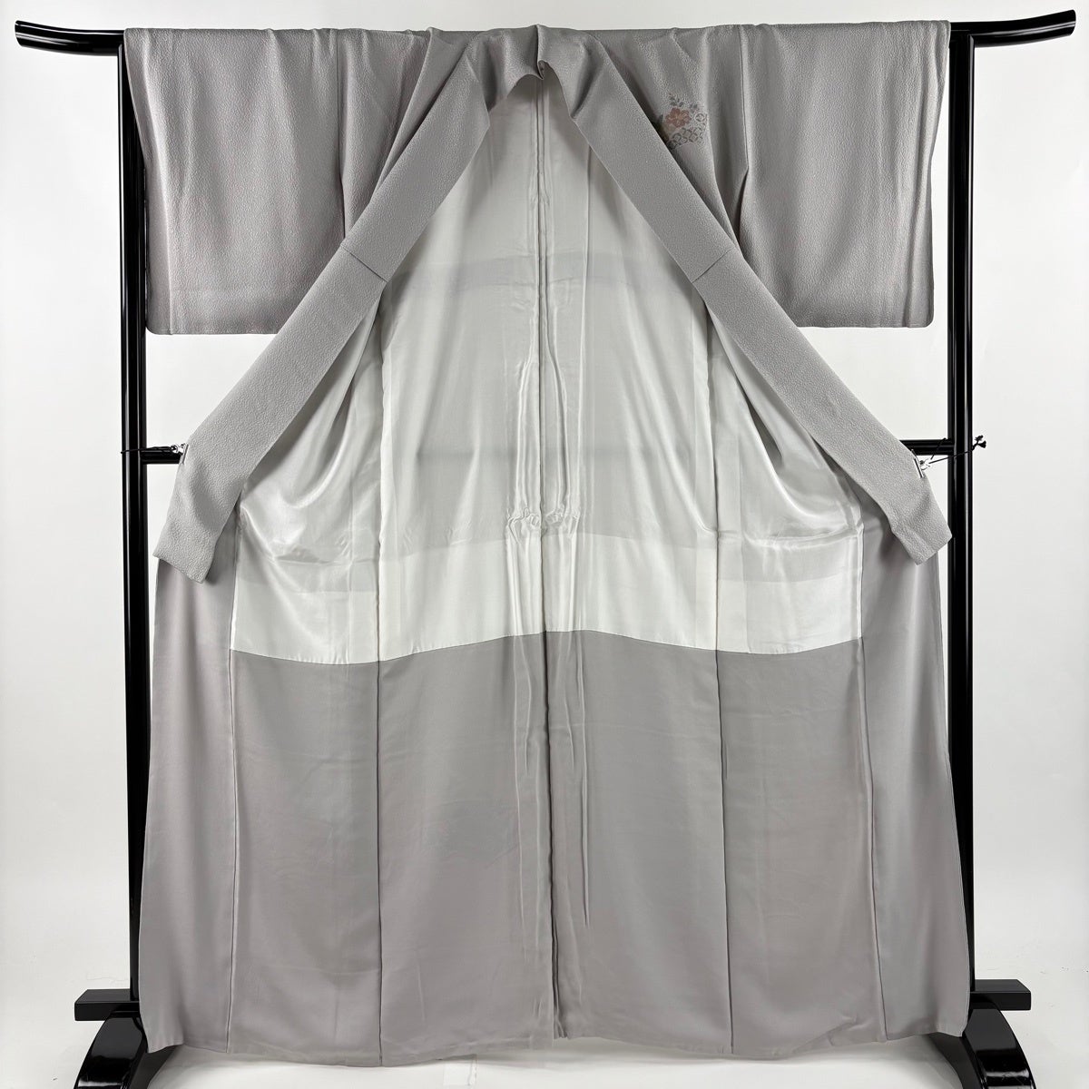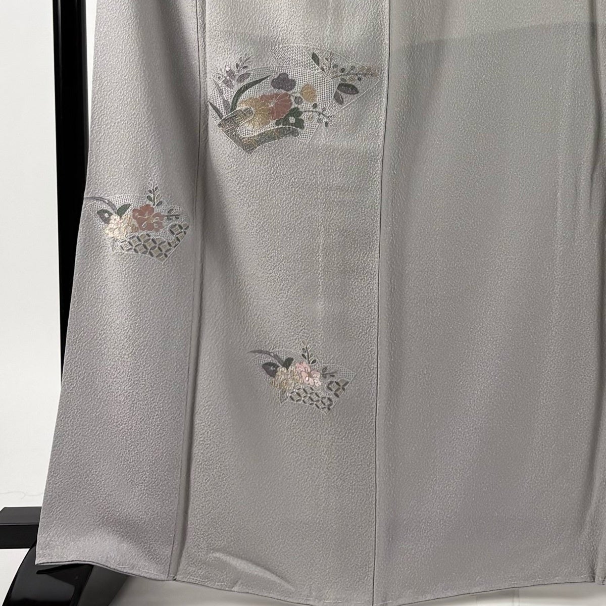 【美品】 訪問着 身丈166cm 裄丈66.5cm M 袷 扇面 枝花 金彩 ぼかし 灰色 正絹 秀品