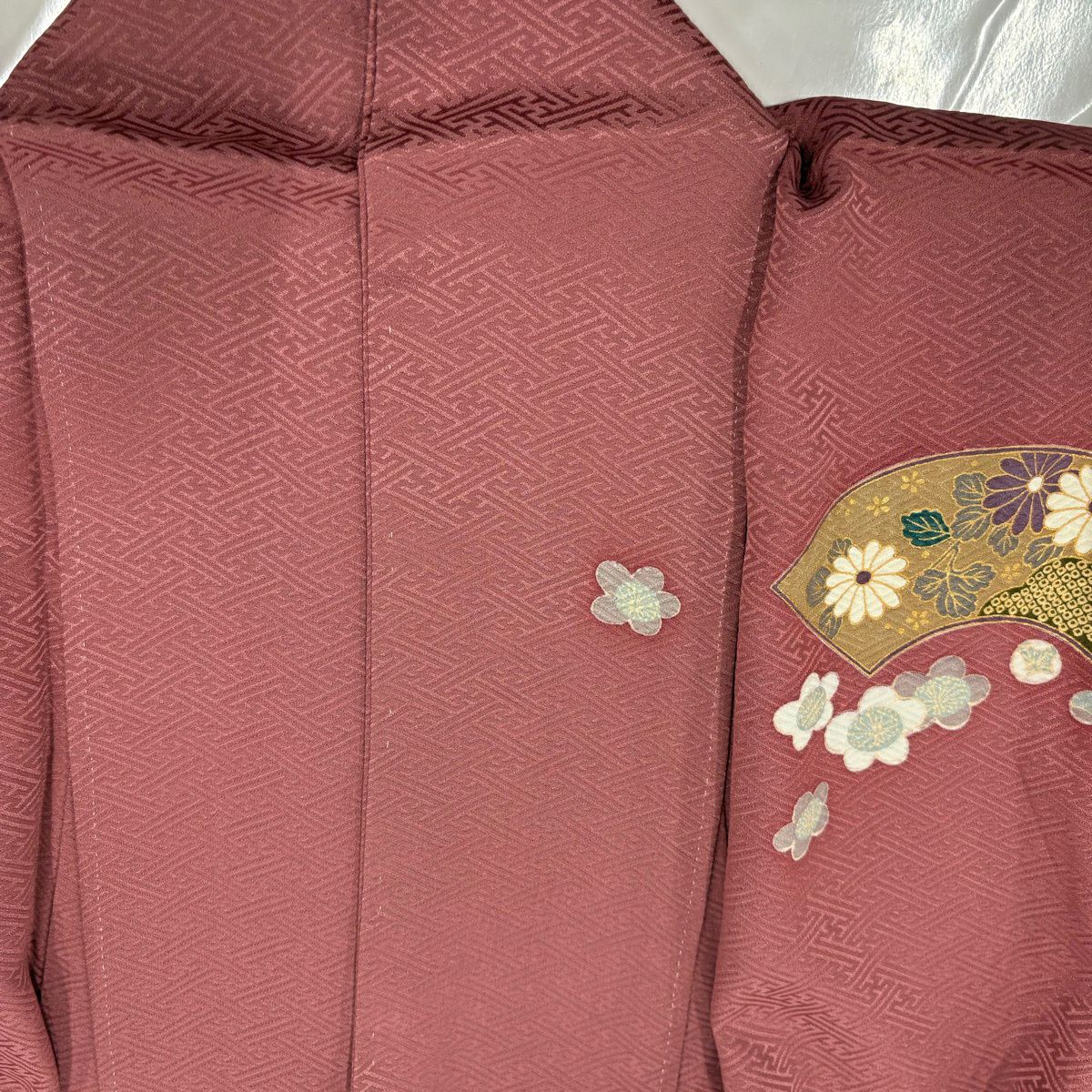 付下げ 身丈154.5cm 裄丈62.5cm S 袷 扇面 桐 絞り 刺繍 小豆色 正絹 秀品 一つ紋
