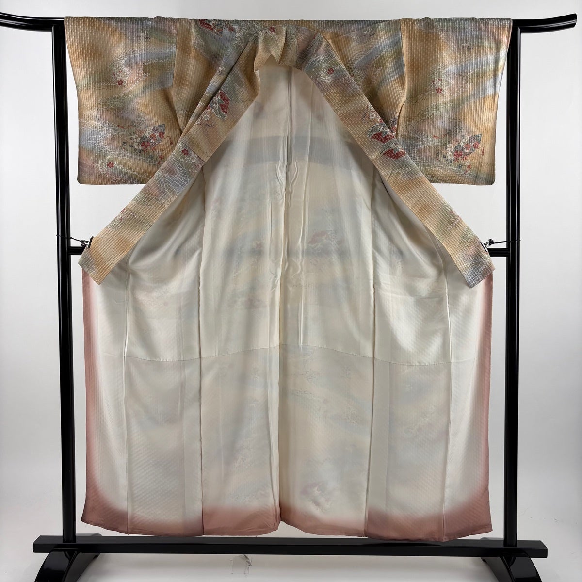 付下げ 身丈163.5cm 裄丈66cm M 袷 檜扇 松竹梅 蘇州刺繍 ピンク 正絹 秀品