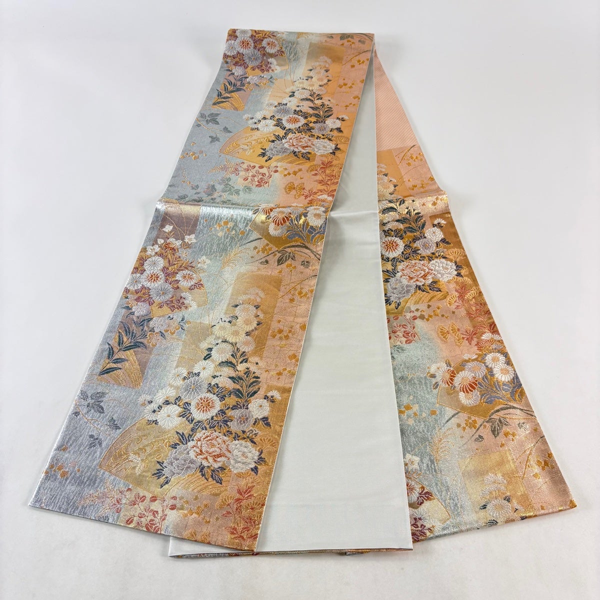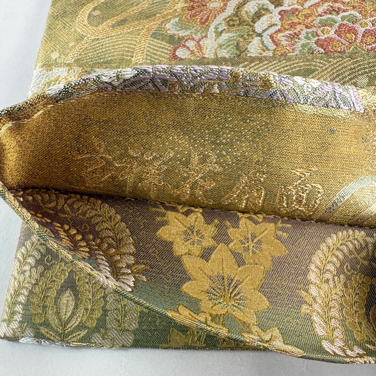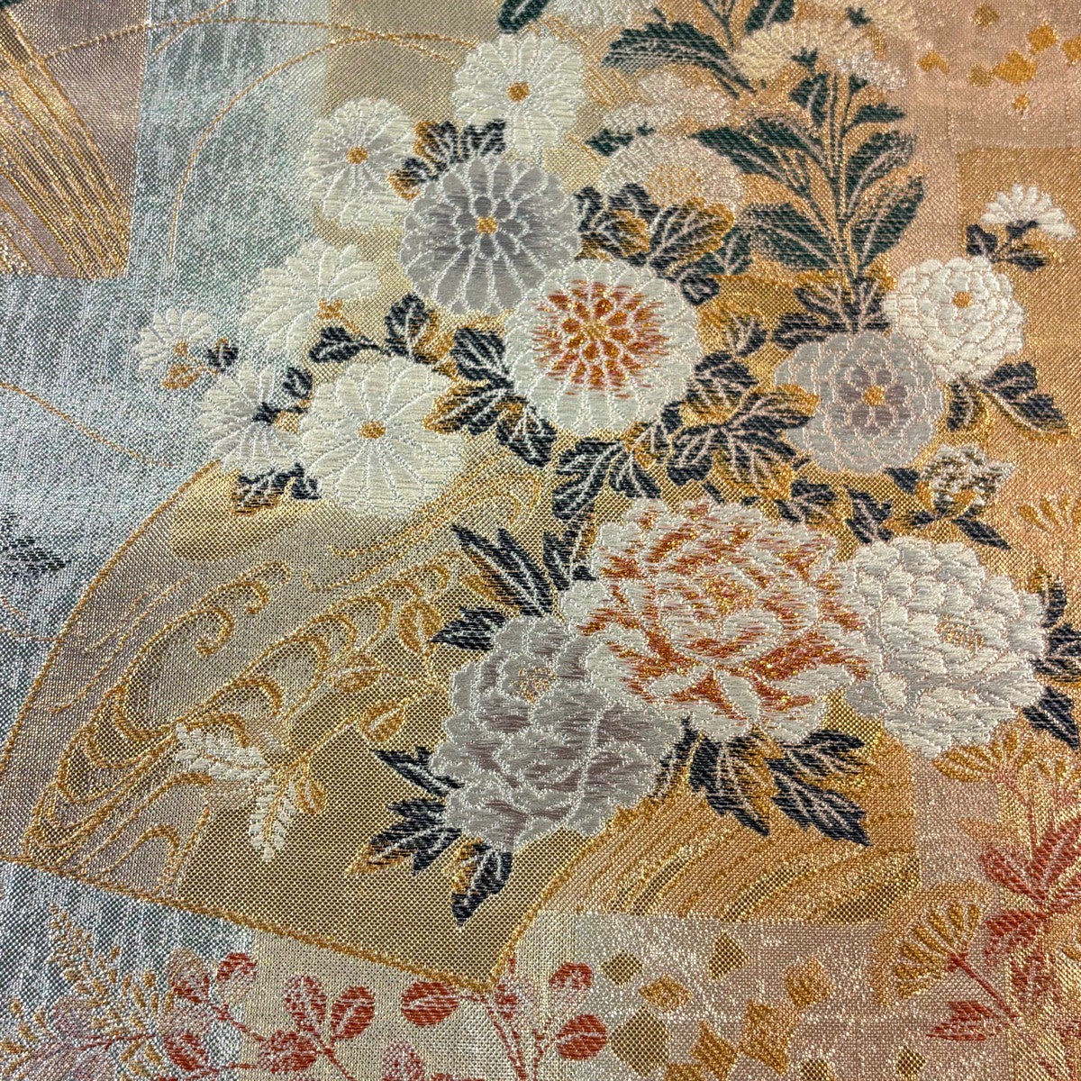 袋帯 秀品 団扇 草花 唐織 箔 金色 六通 正絹