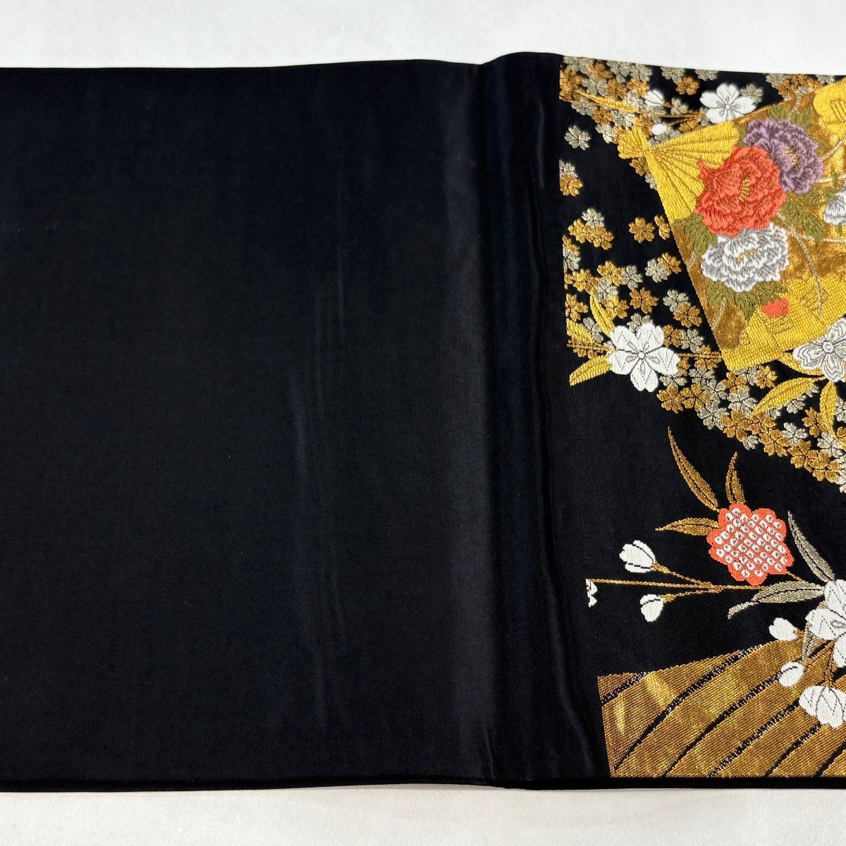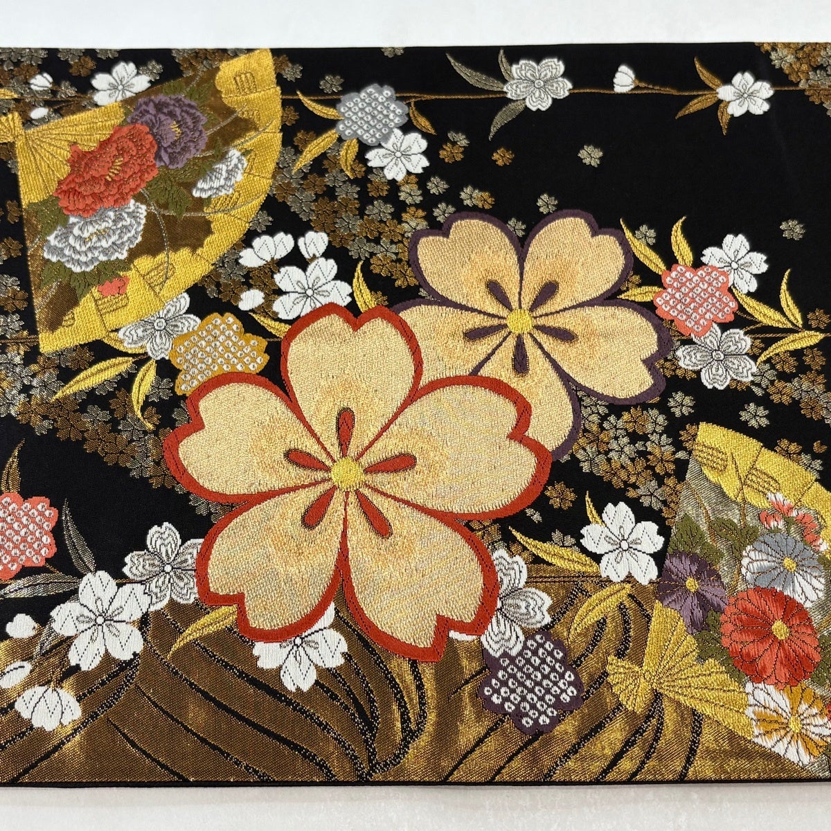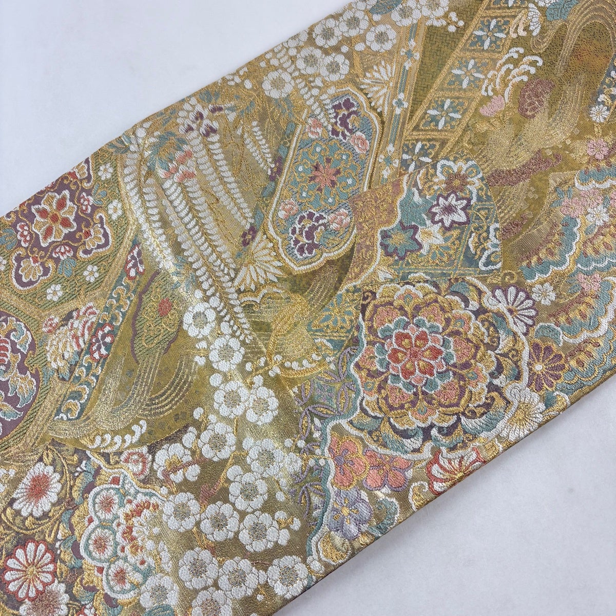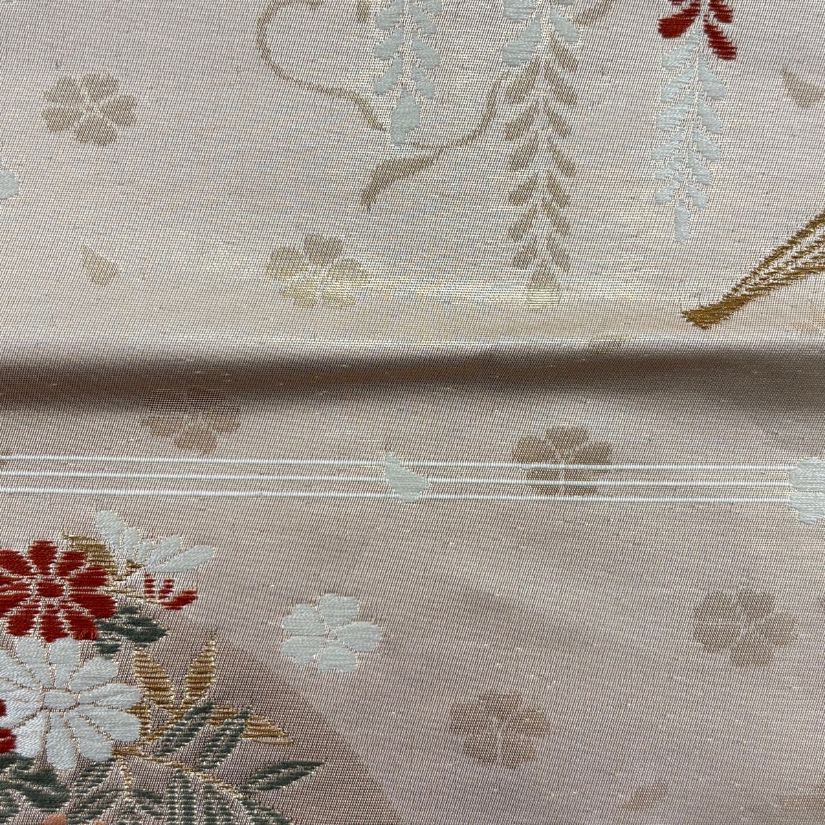 袋帯 秀品 団扇 草花 唐織 箔 金色 六通 正絹