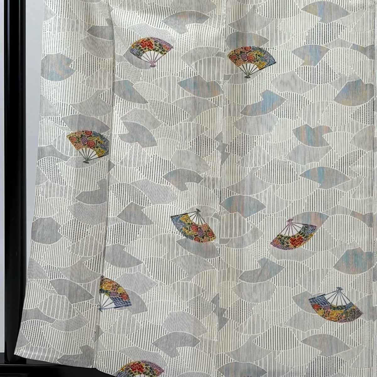 【美品】 小紋 身丈161cm 裄丈62.5cm S 紗絽袷 扇 灰色 正絹 名品