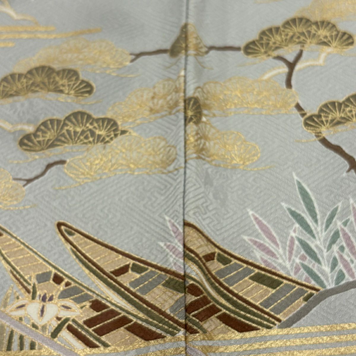 訪問着 身丈163cm 裄丈65cm M 袷 扇 松竹梅 金糸 金彩 灰色 正絹 秀品