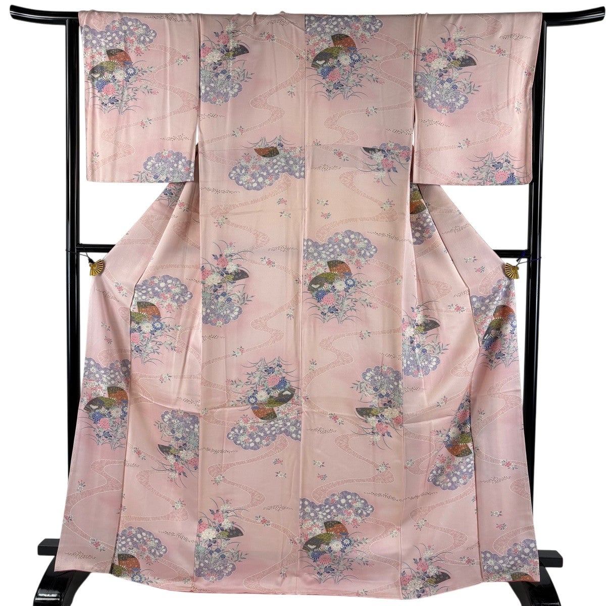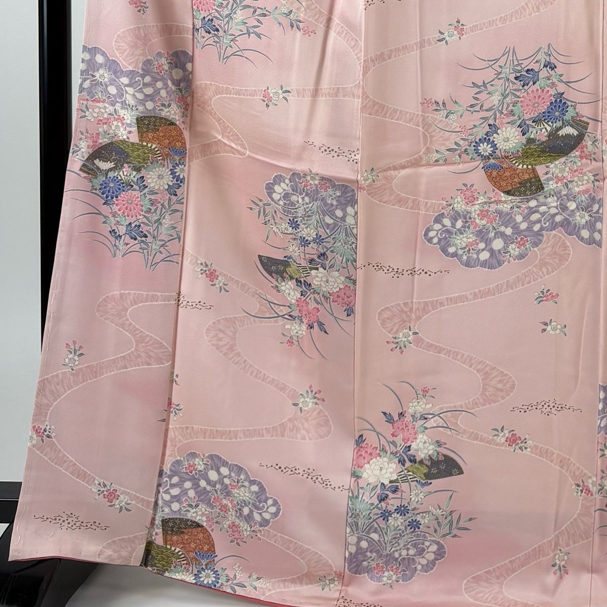 付下げ 身丈164.5cm 裄丈65.5cm M 袷 扇 姫 刺繍 ぼかし ピンク 正絹 秀品