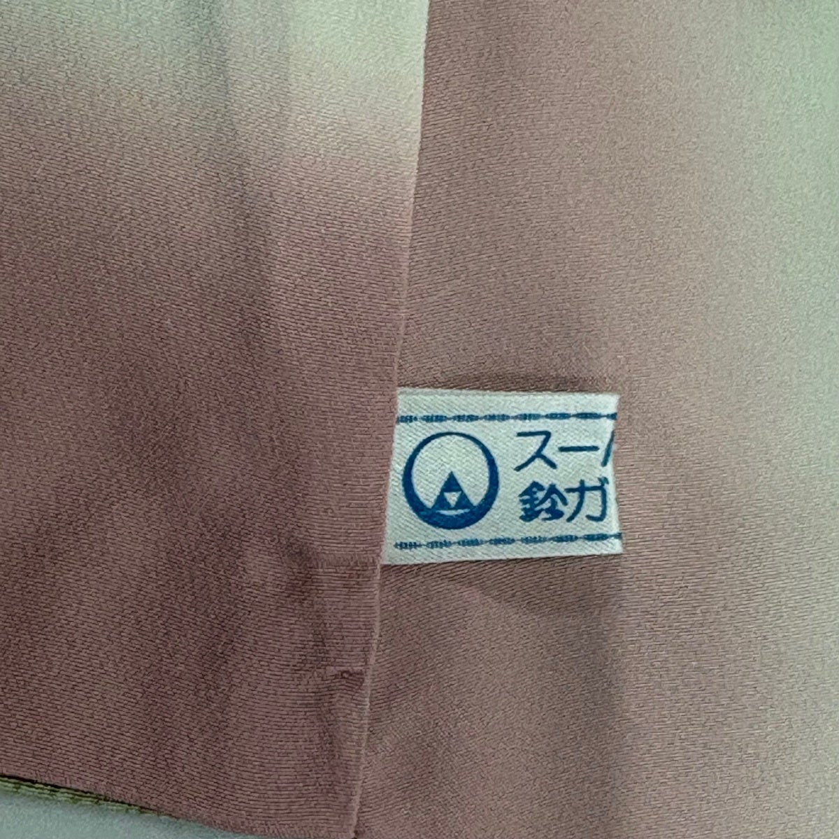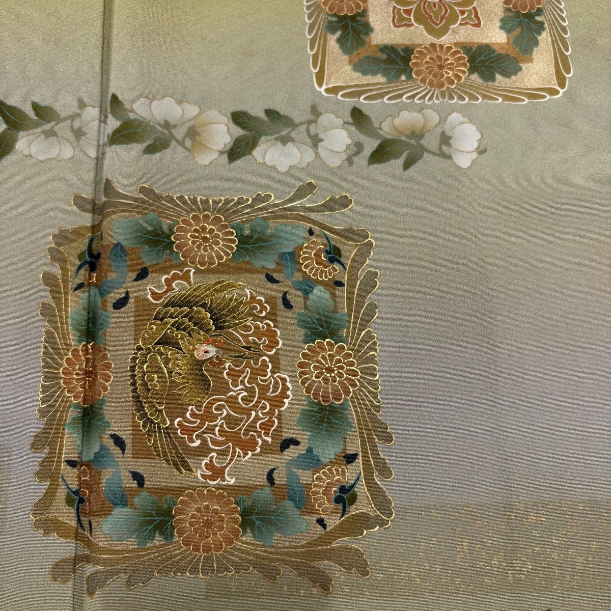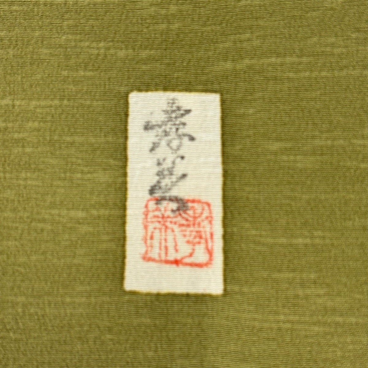 訪問着 身丈151.5cm 裄丈62.5cm S 袷 落款あり 鳥 草花 染め分け ぼかし 抹茶色 正絹 名品