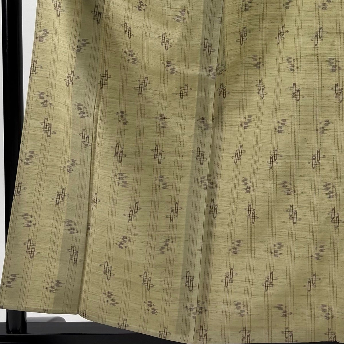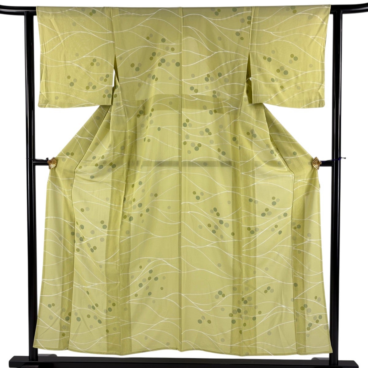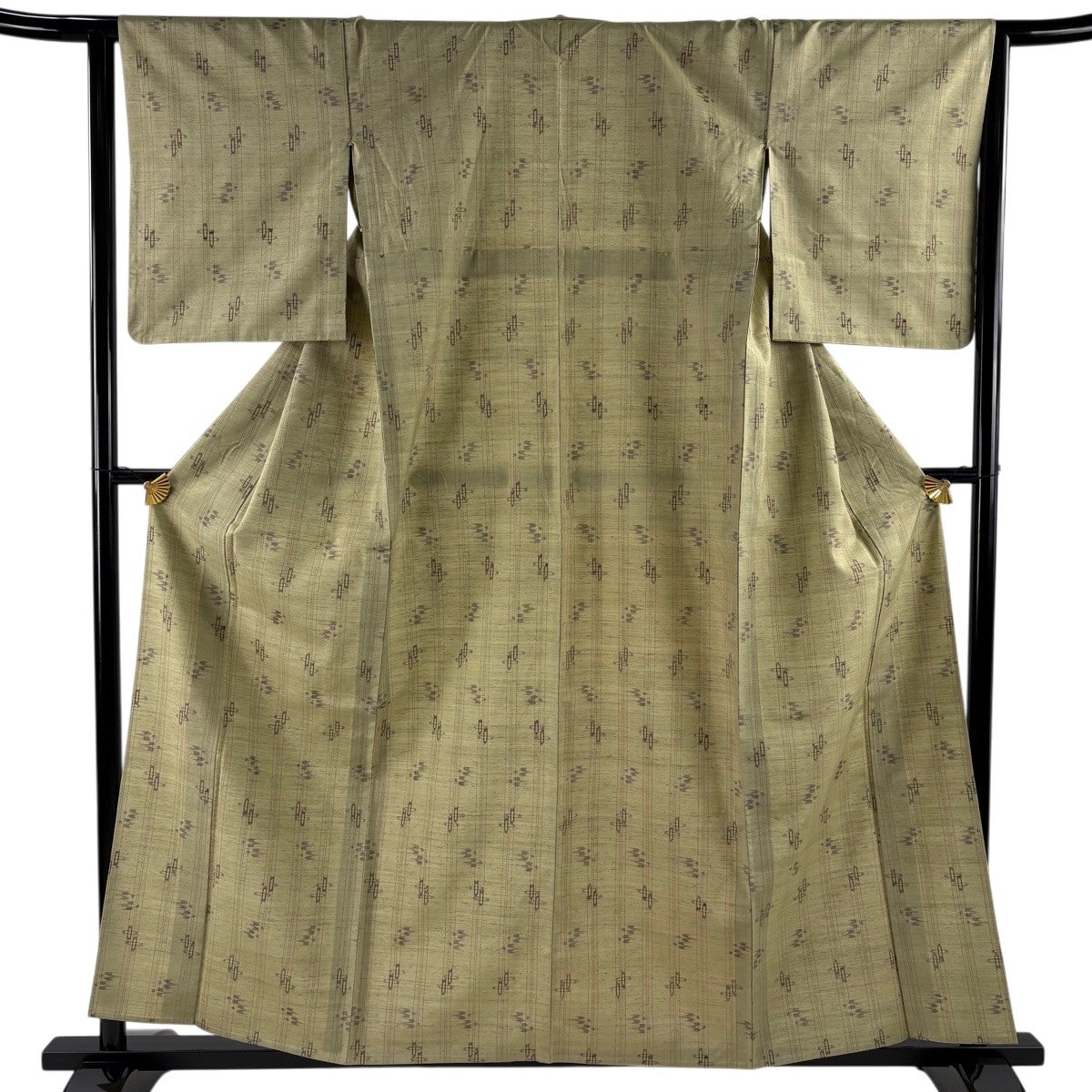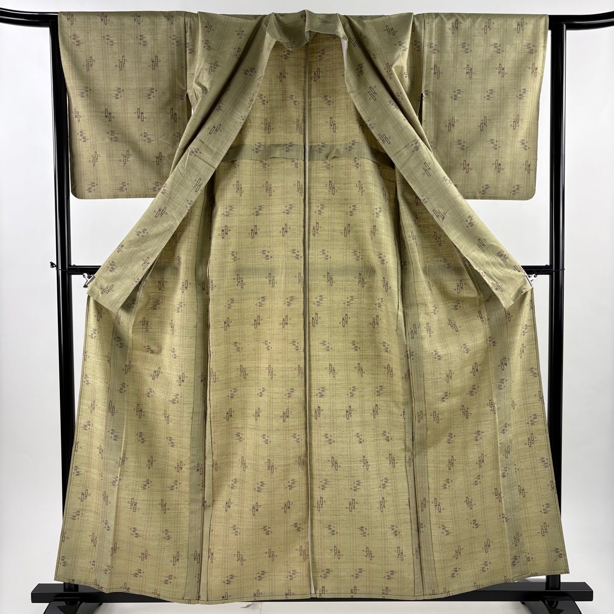 30%OFF 【美品】 小紋 身丈153.5cm 裄丈62cm S 薄物 絽 幾何学 抹茶色 正絹 名品 K30