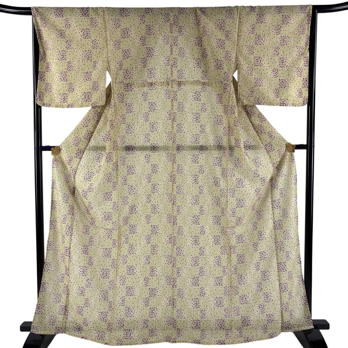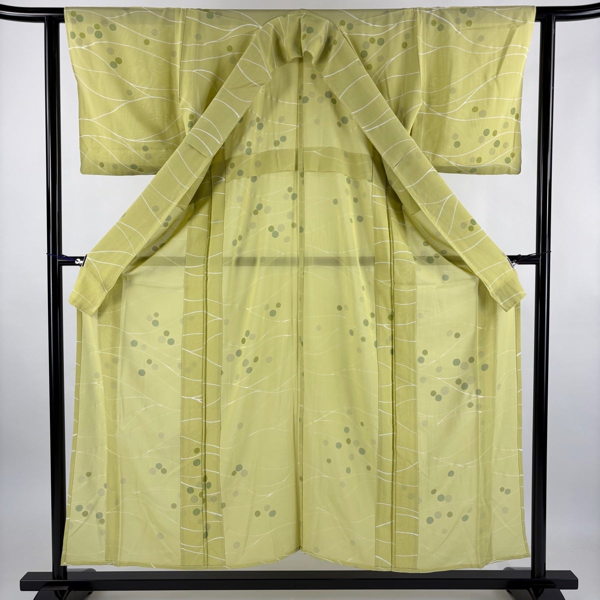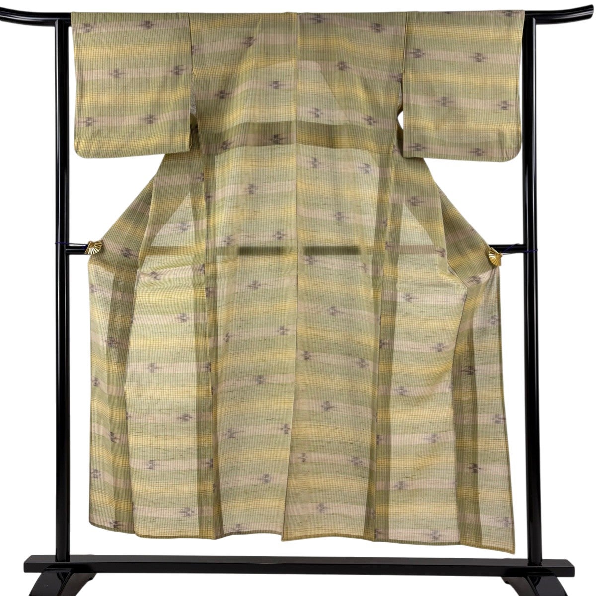 30%OFF 【美品】 小紋 身丈153.5cm 裄丈62cm S 薄物 絽 幾何学 抹茶色 正絹 名品 K30