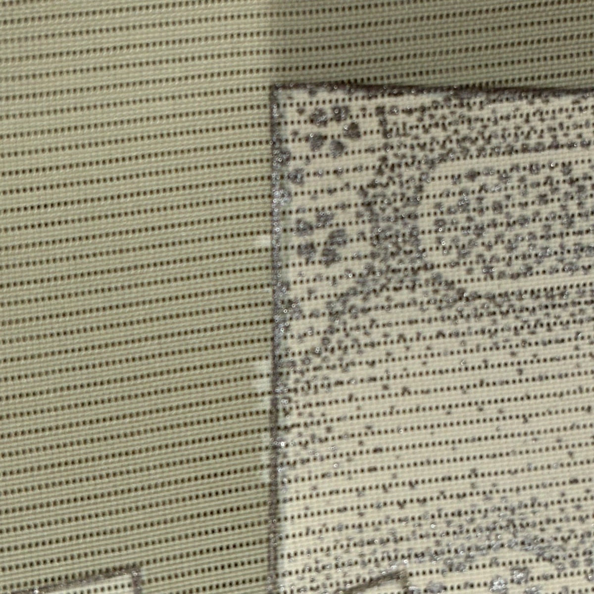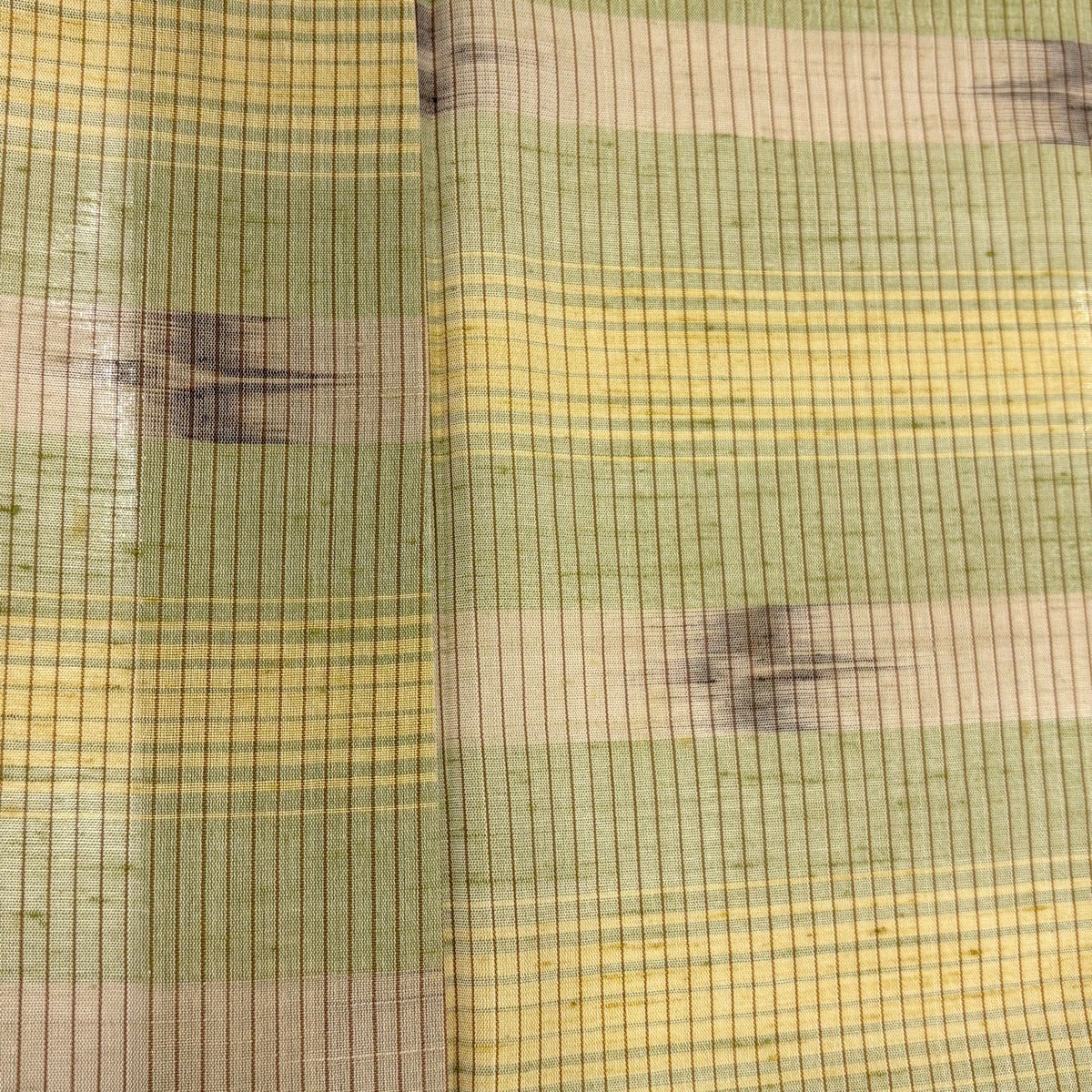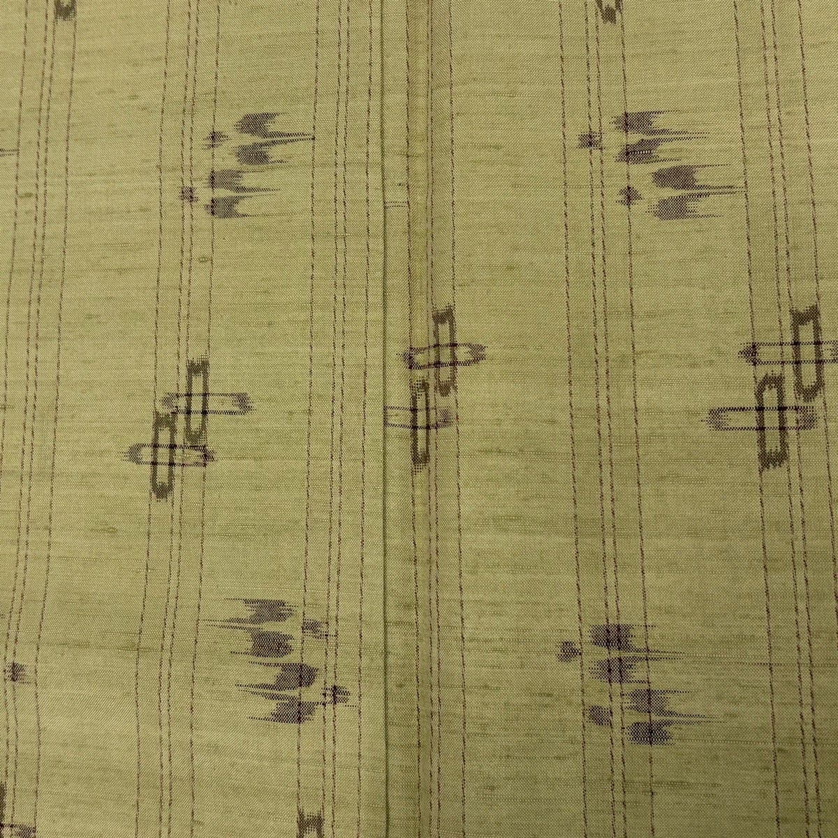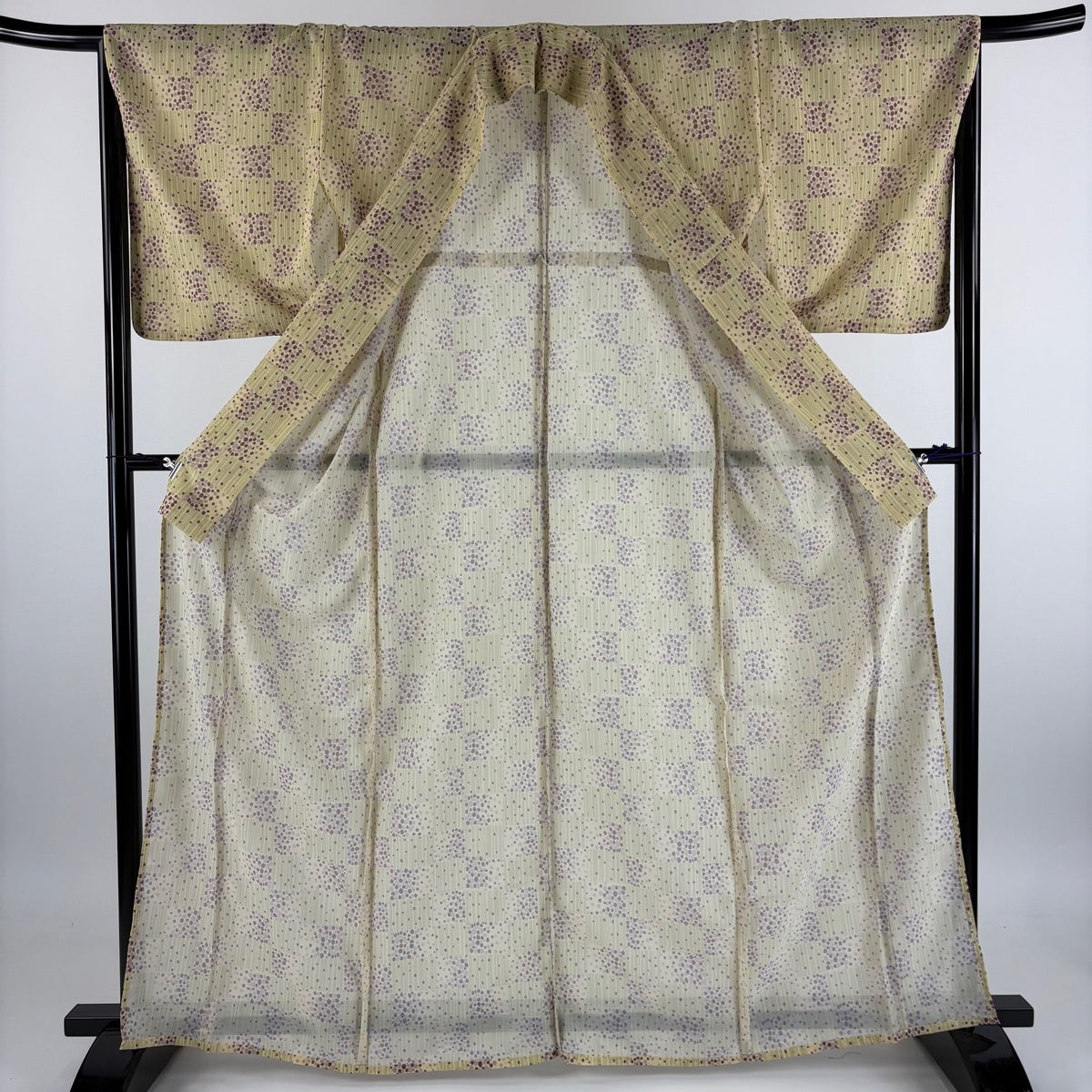 30%OFF 【美品】 小紋 身丈153.5cm 裄丈62cm S 薄物 絽 幾何学 抹茶色 正絹 名品 K30