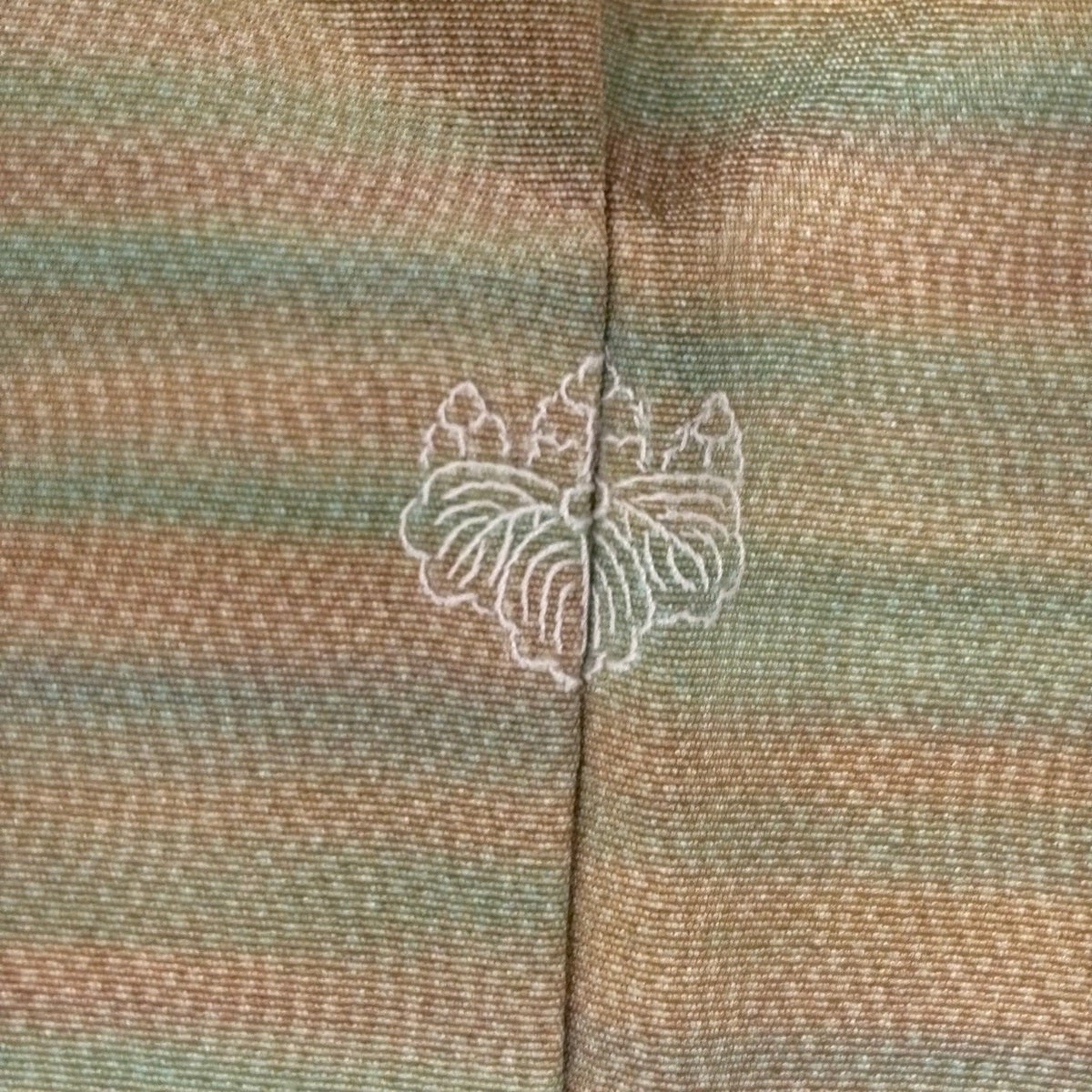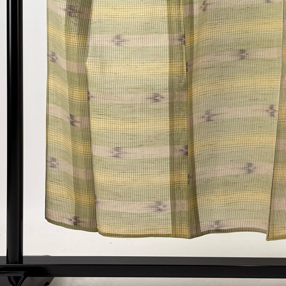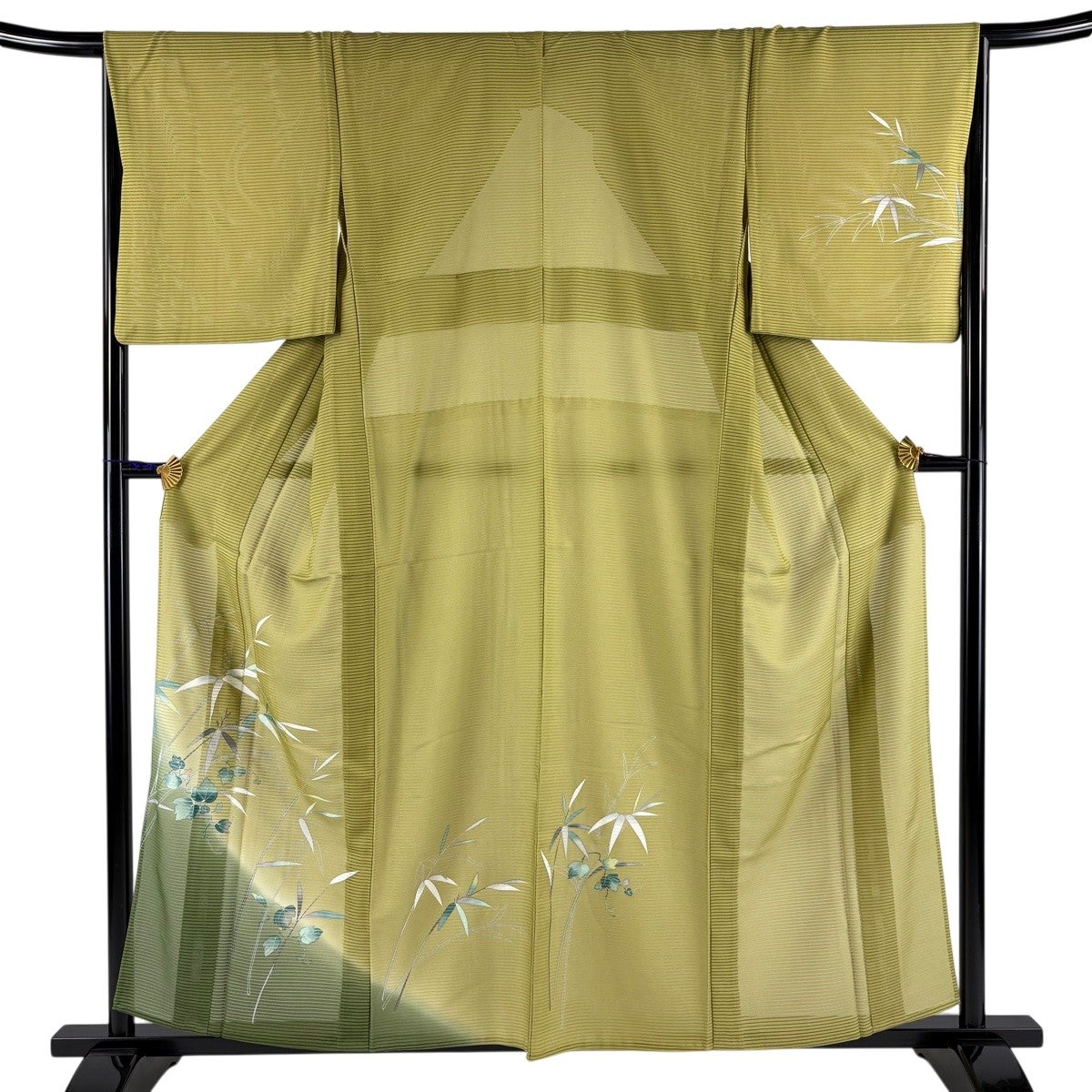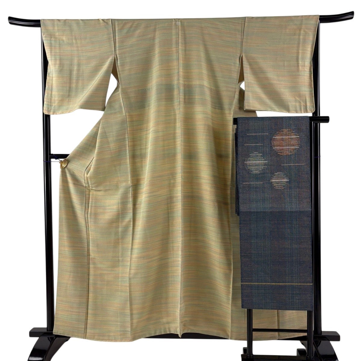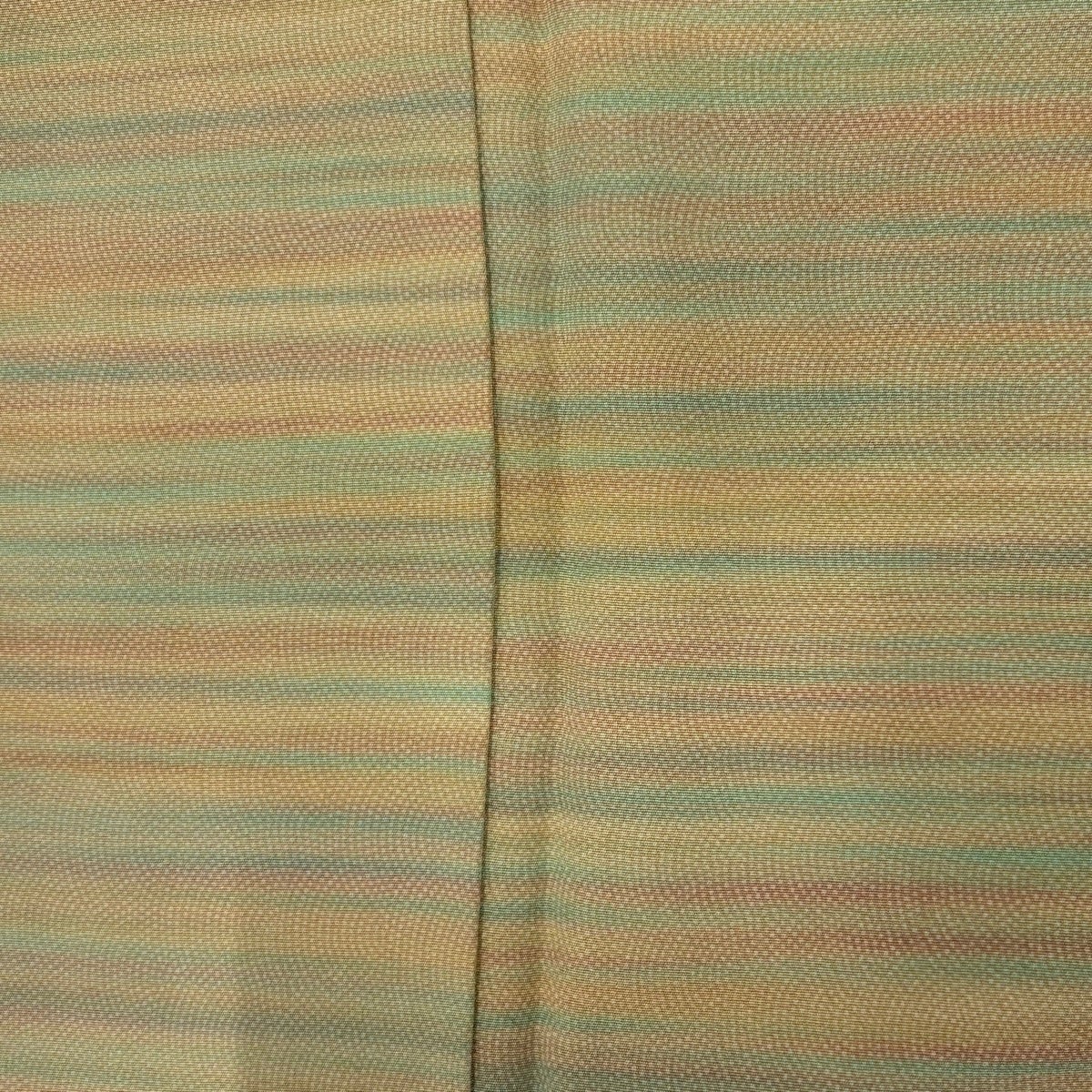 50%OFF 【美品】 小紋 身丈161.5cm 裄丈64.5cm M 単衣 縦縞 抹茶色 正絹 秀品 K50