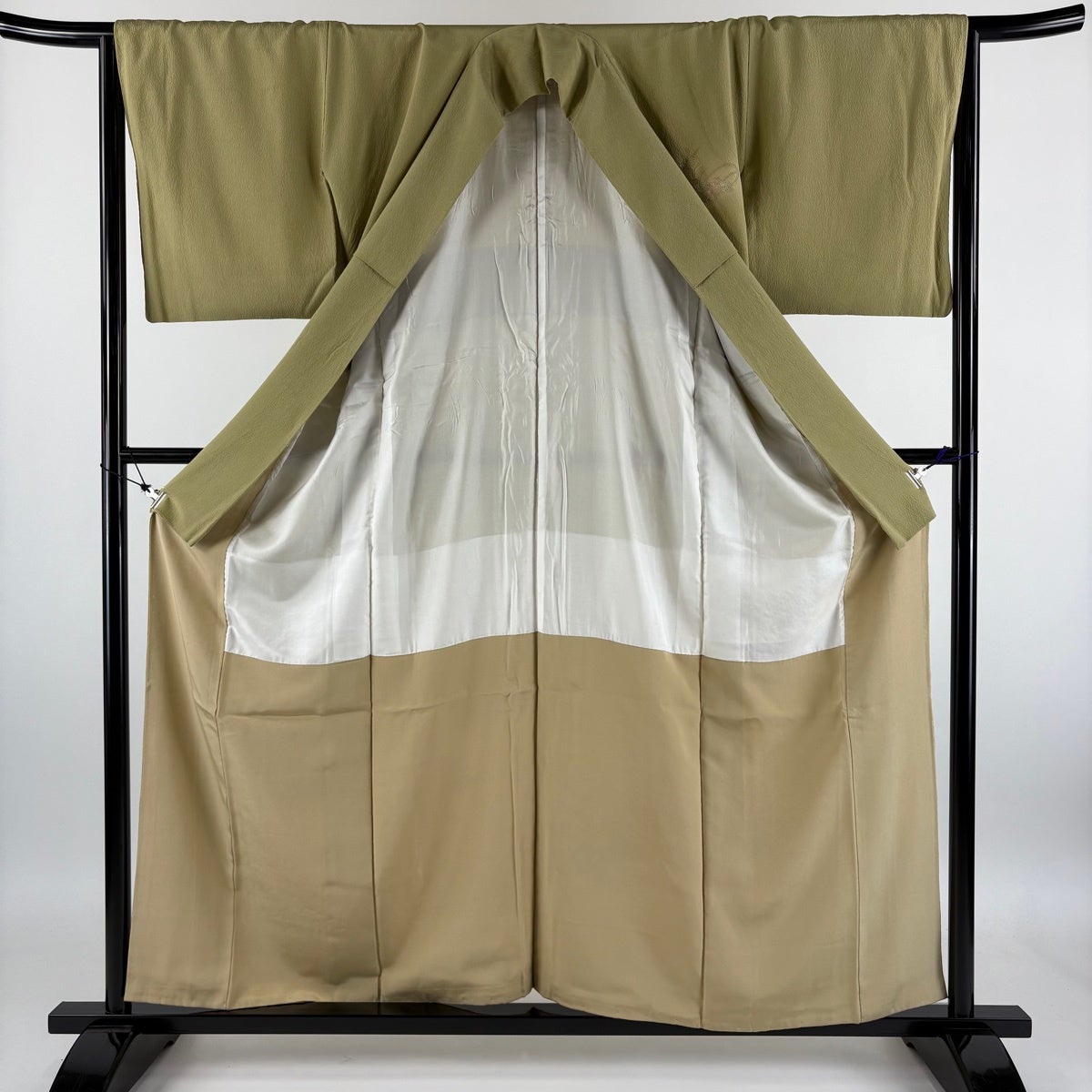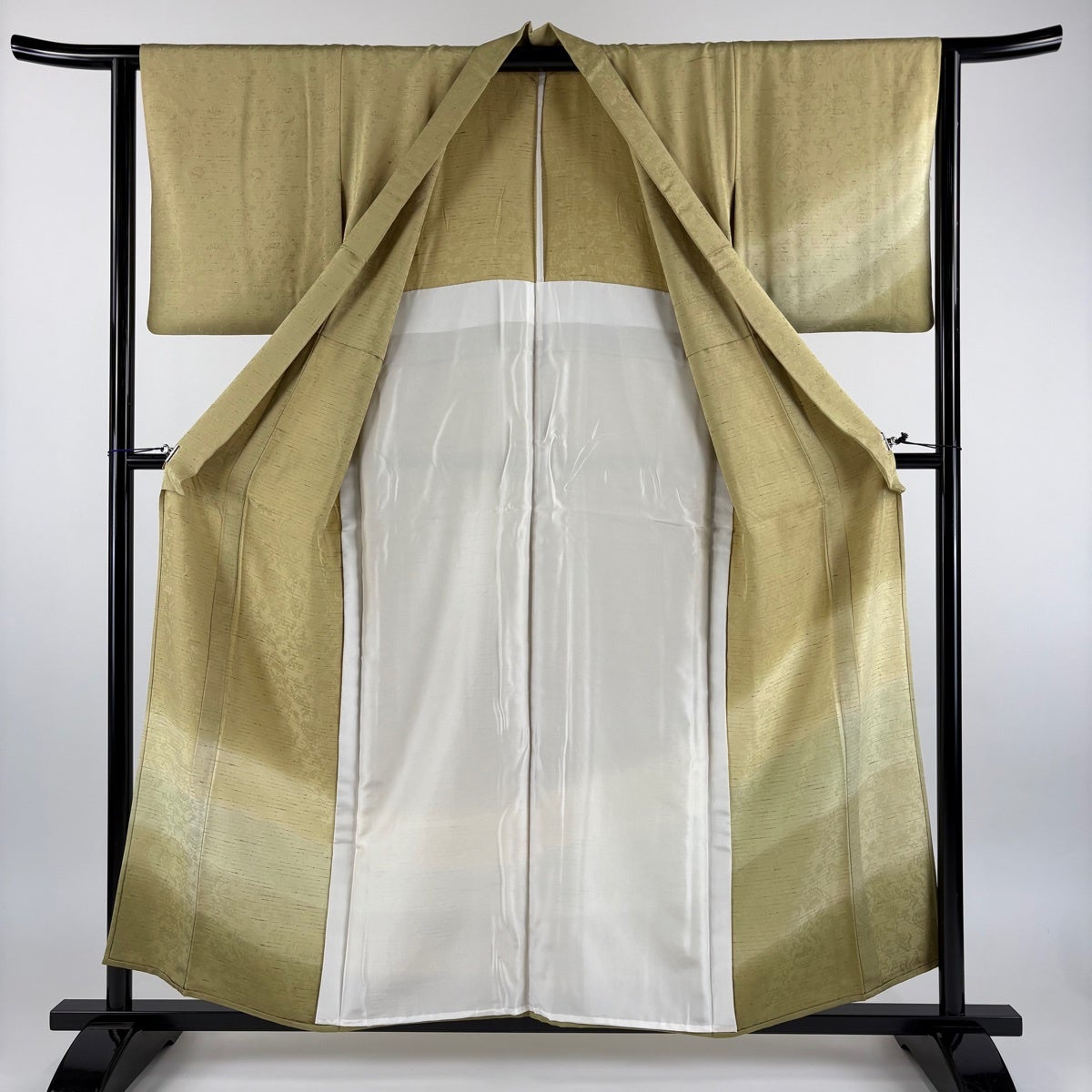30%OFF 付下げ 身丈156cm 裄丈62cm S 単衣 バチ衿 地紋 裾ぼかし 抹茶色 正絹 秀品 K30