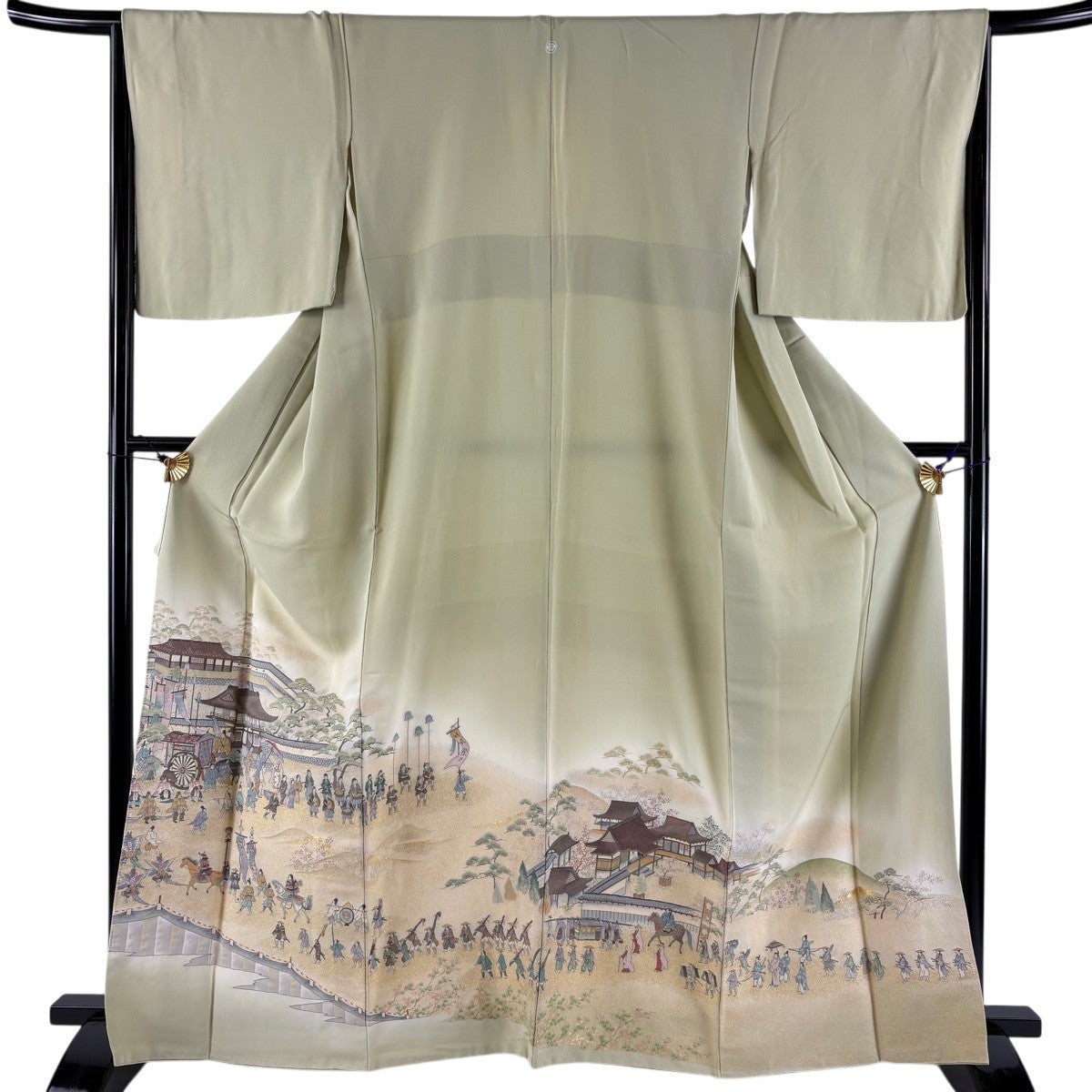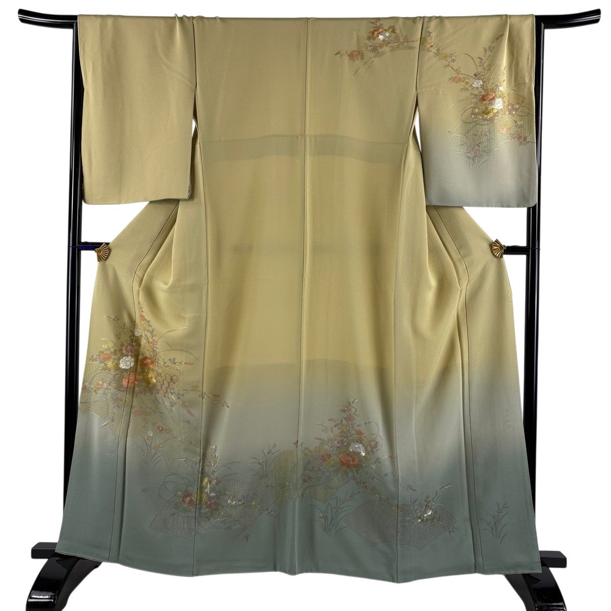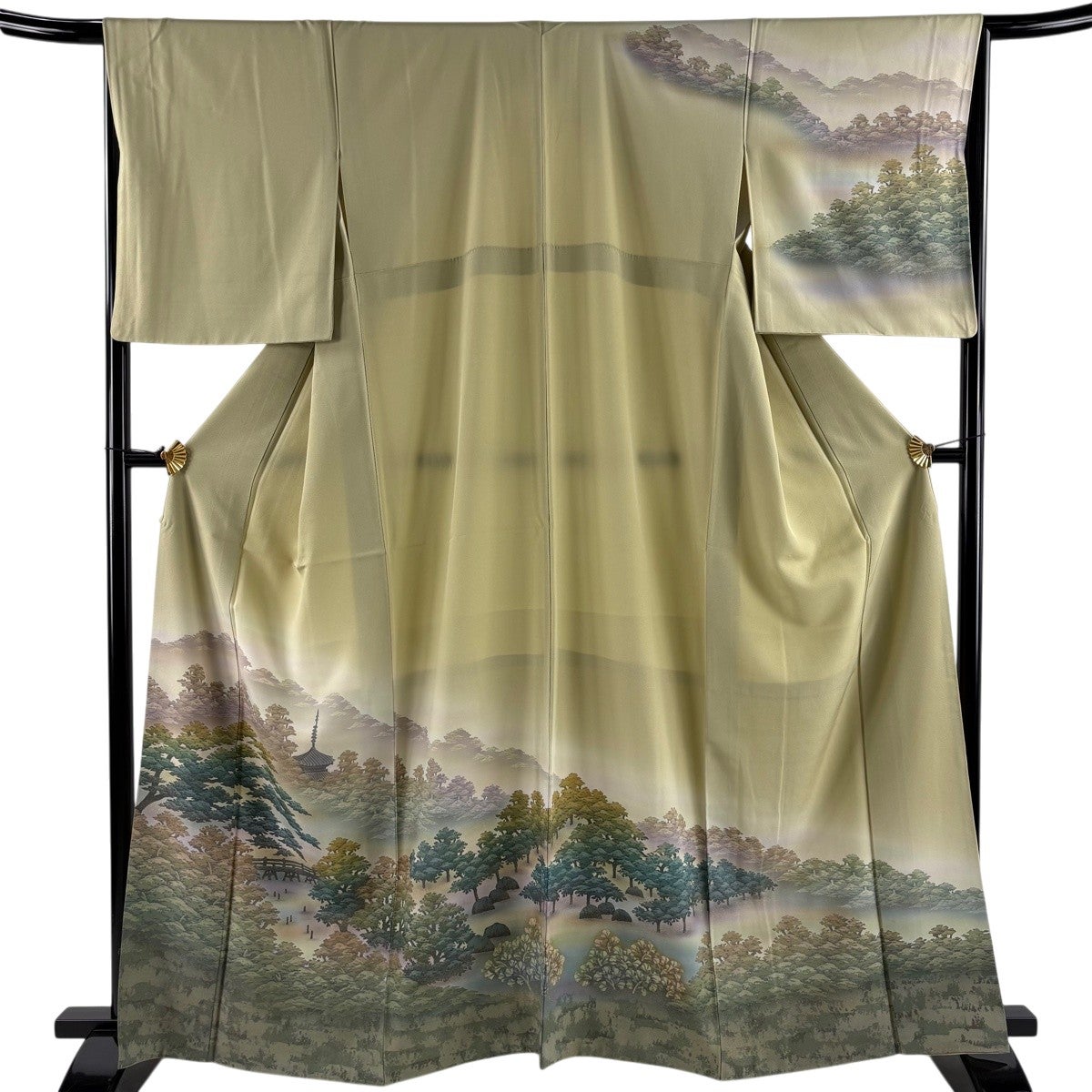 50%OFF 訪問着 身丈166cm 裄丈69cm L 袷 落款あり 辻が花 ぼかし 抹茶色 正絹 名品 K50