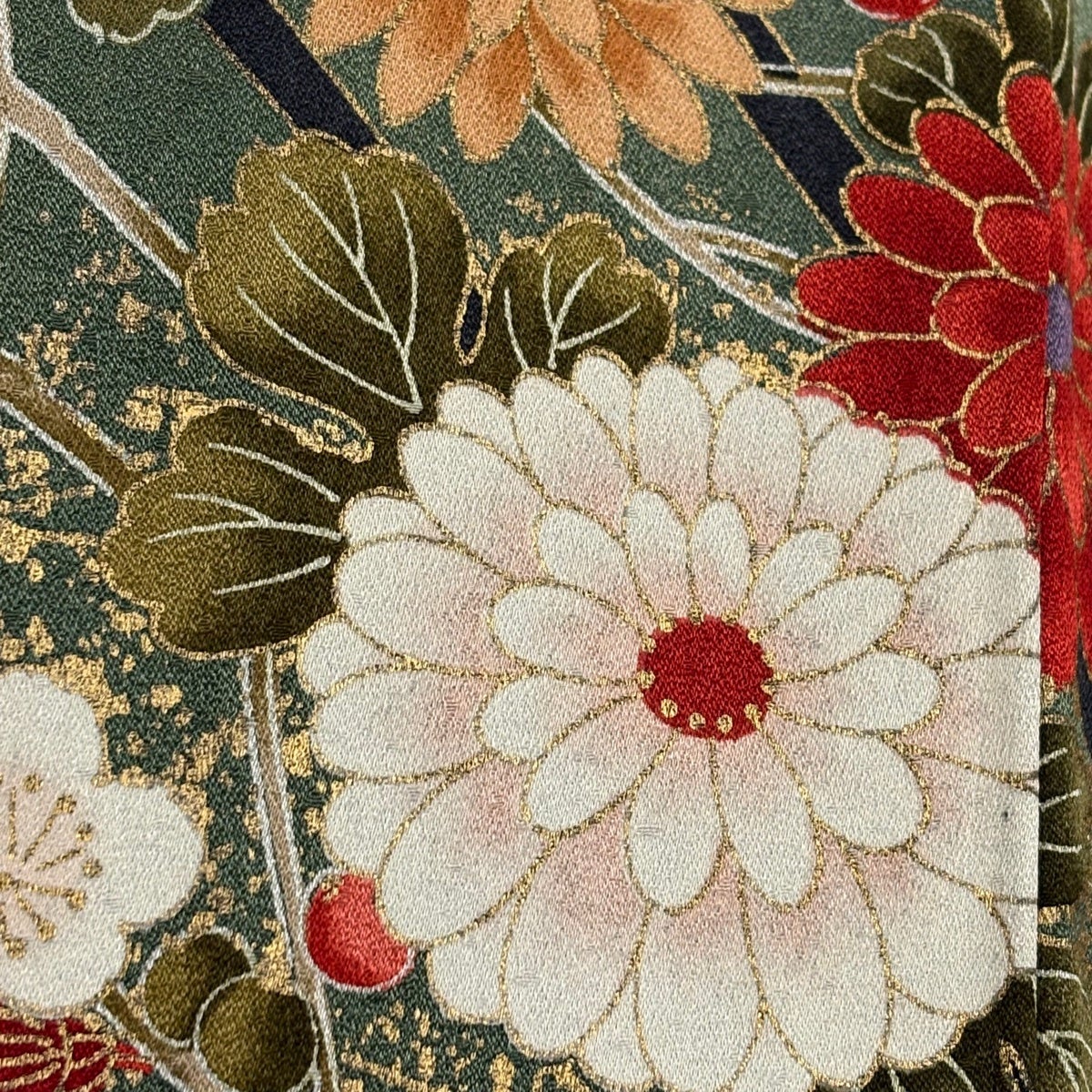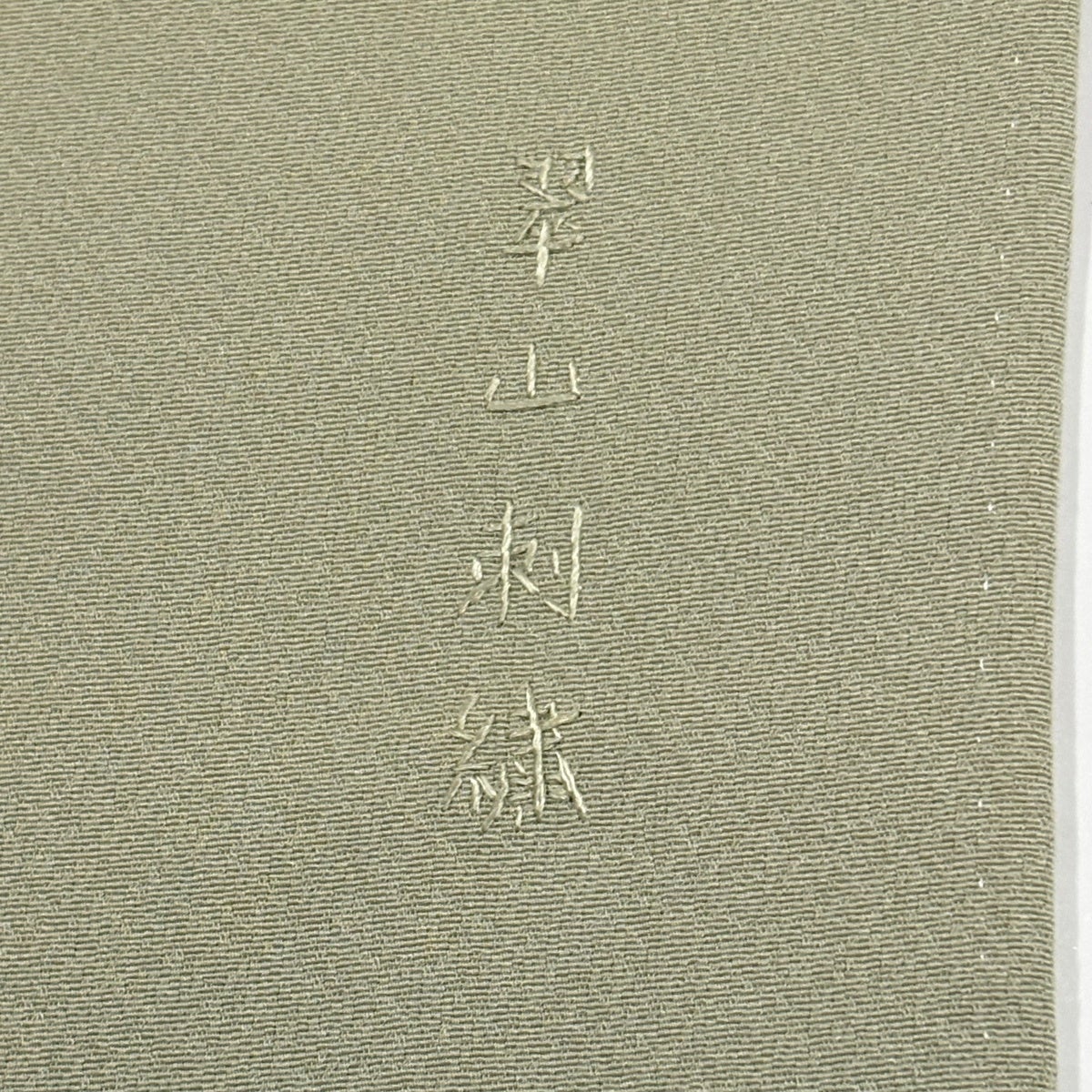 50%OFF 付下げ 身丈153.5cm 裄丈62cm S 袷 草花 相良刺繍 抹茶色 正絹 秀品 K50