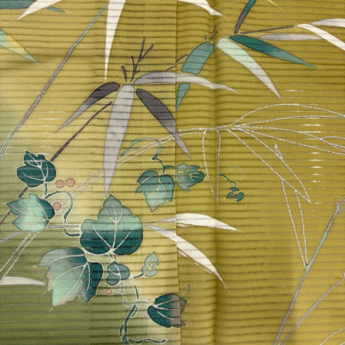 20%OFF 【美品】 小紋 身丈157cm 裄丈62cm S 薄物 絽 蛍 葉柄 抹茶色 正絹 逸品 K30