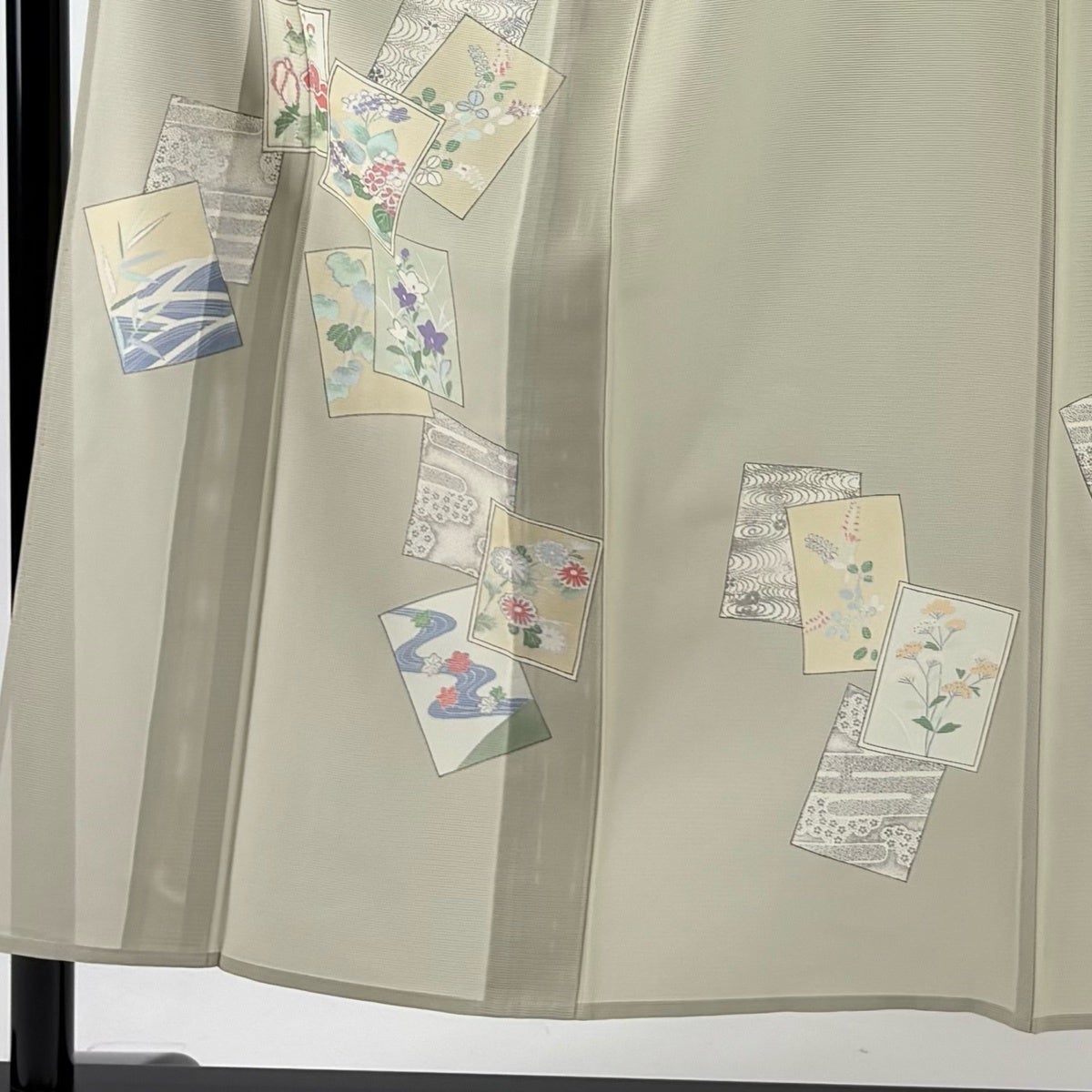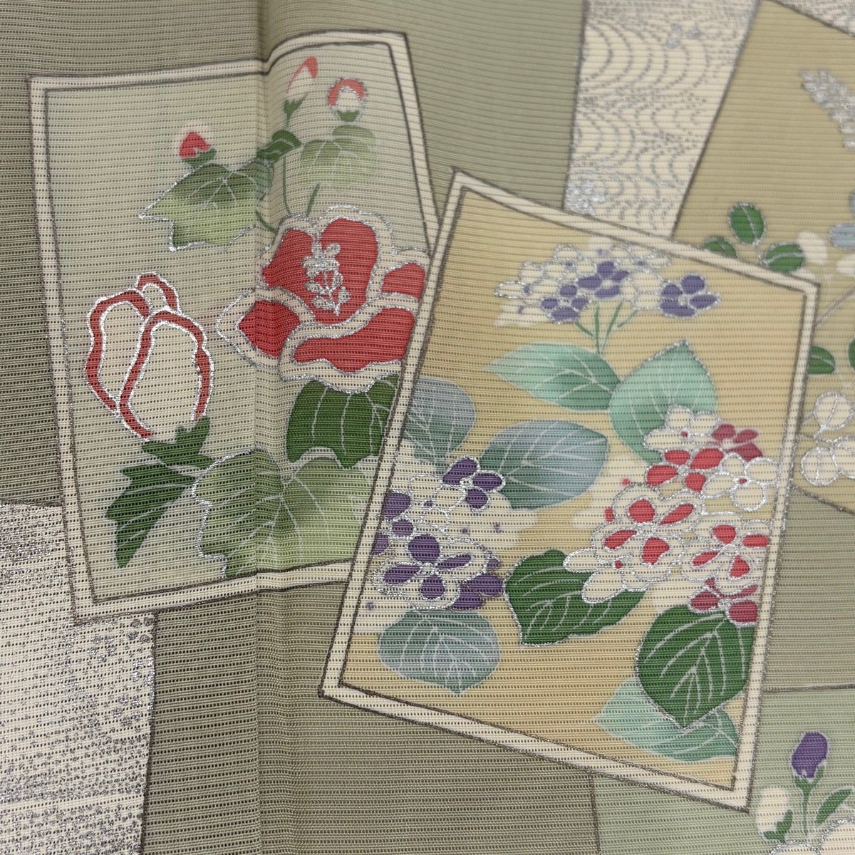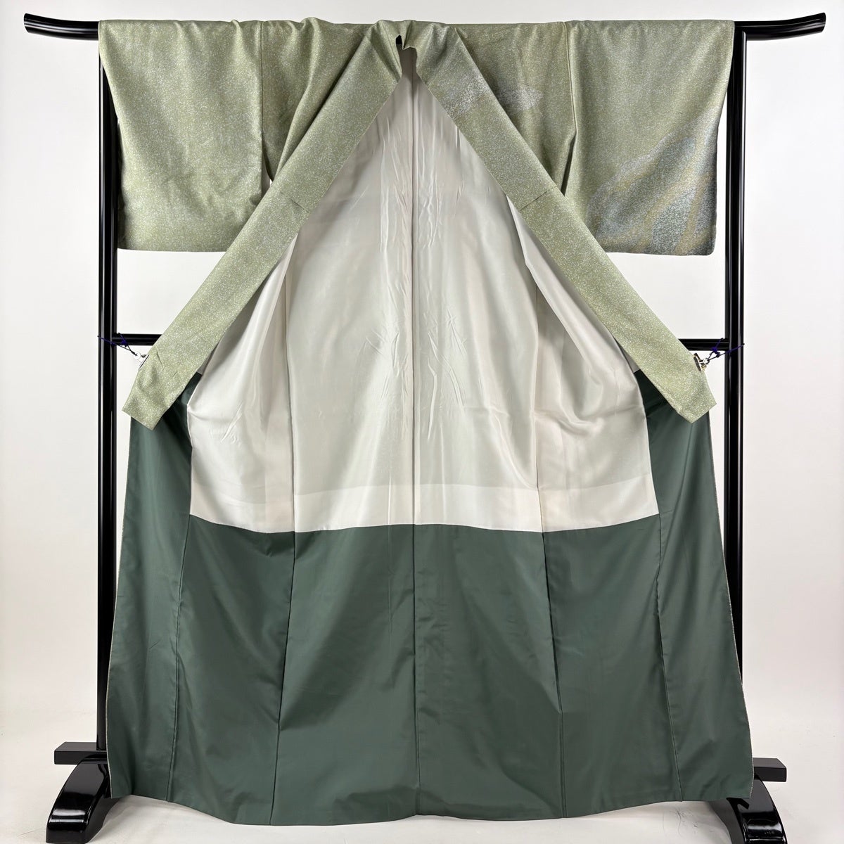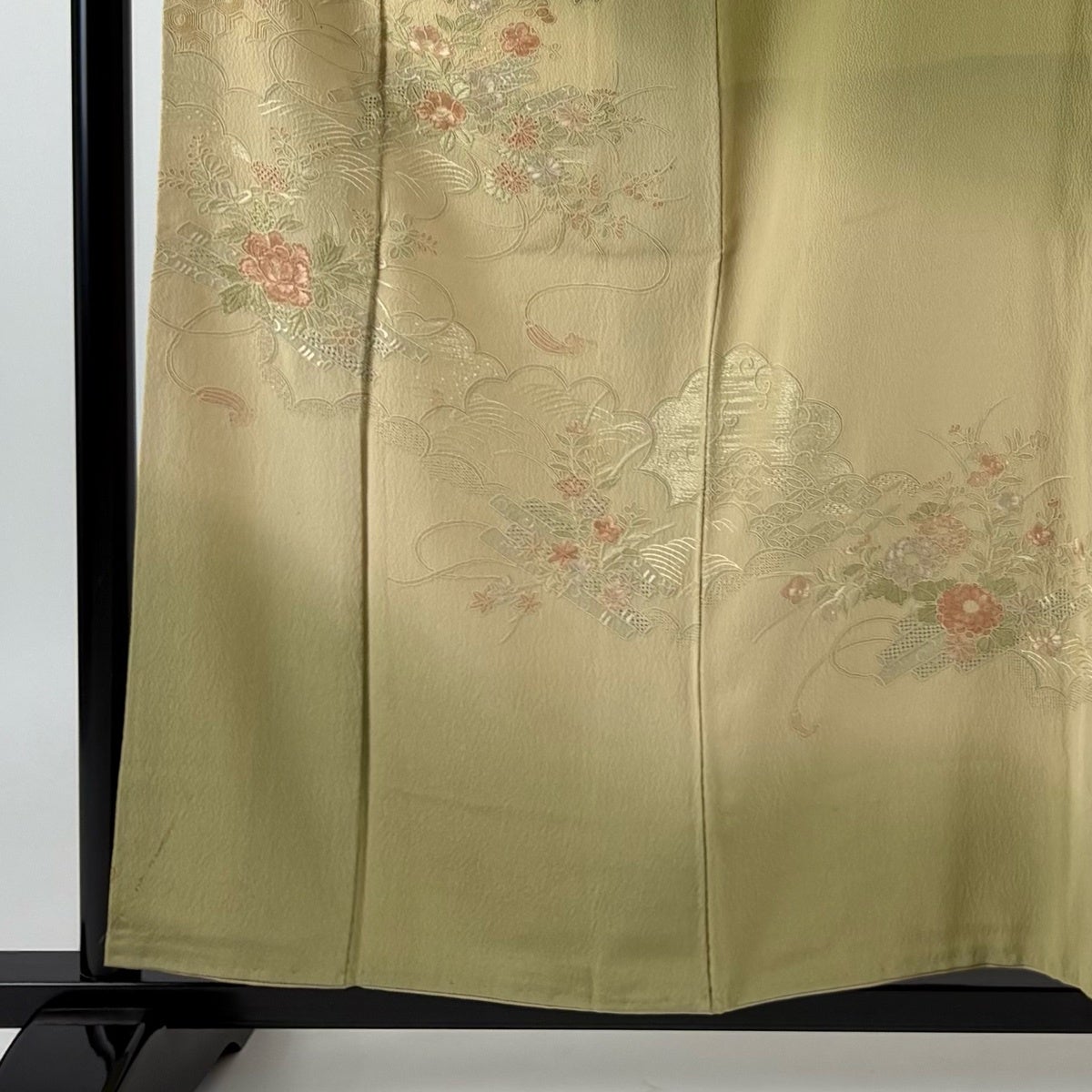 50%OFF 【美品】 付下げ 身丈159cm 裄丈62cm S 袷 草花 霞 抹茶色 正絹 秀品 K50