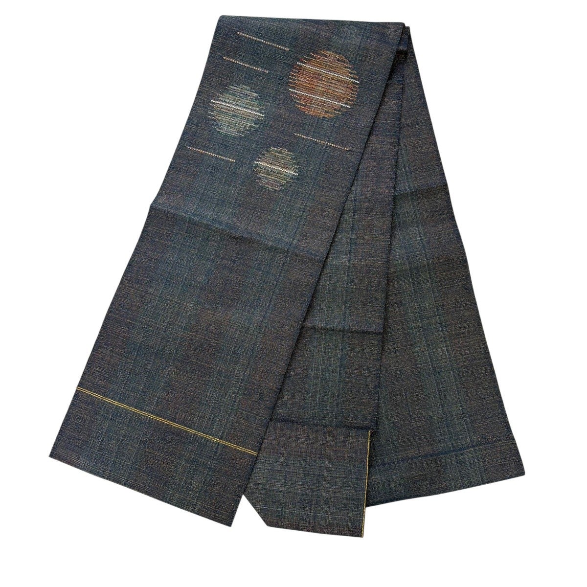 30%OFF 名古屋帯 秀品 夏帯 絽 八寸名古屋帯 松葉仕立て トンネル仕立て 葉柄 波頭 金銀糸 抹茶色 正絹 K30