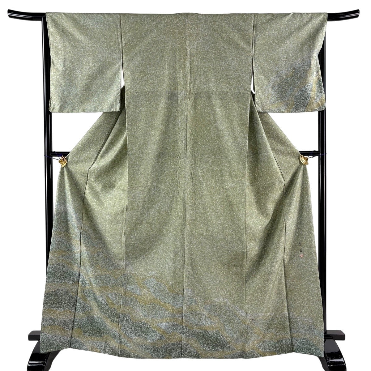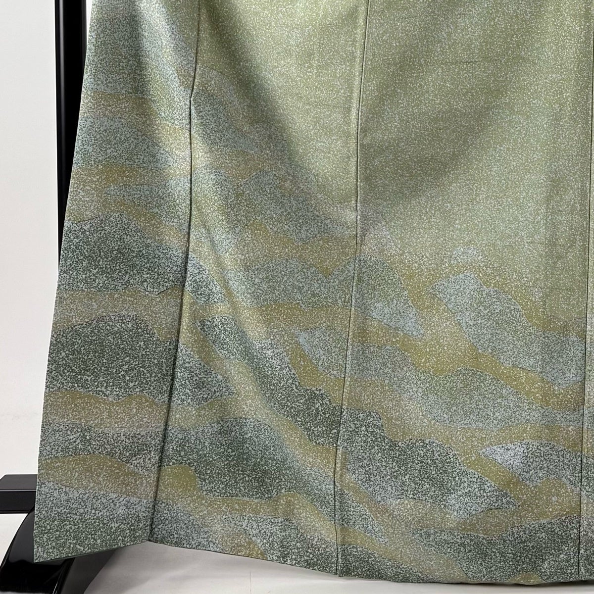 30%OFF 【美品】 付下げ 身丈153cm 裄丈62.5cm S 単衣 紬地 霞 抹茶色 正絹 名品 K30
