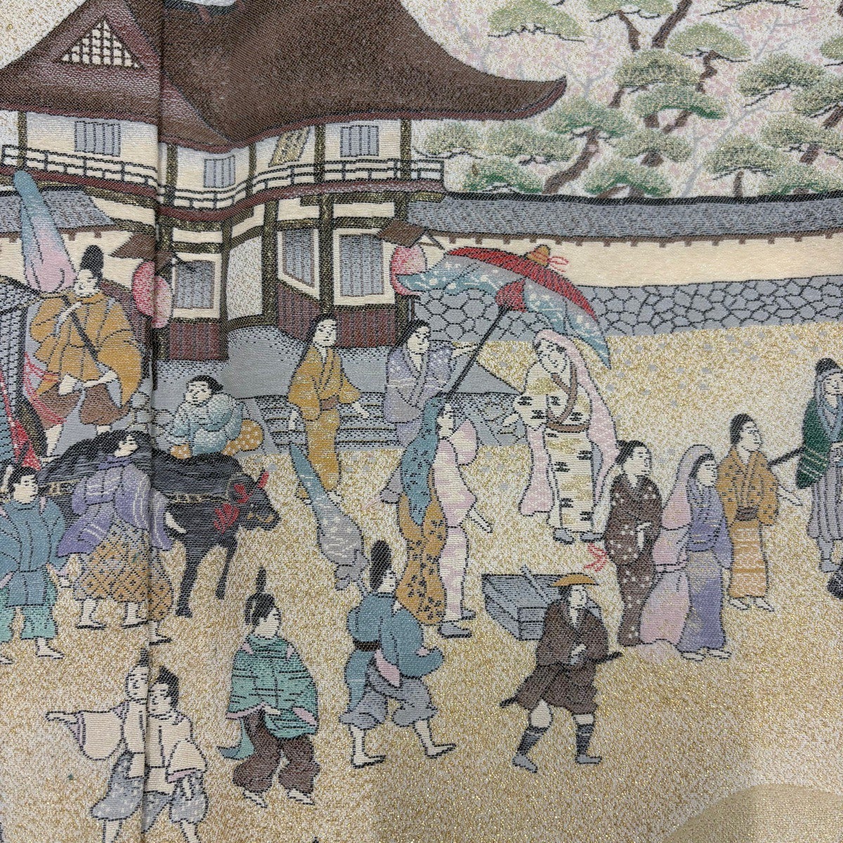 20%OFF 【美品】 袋帯 逸品 落款あり 高橋峰陵 花びら 金糸 ぼかし 抹茶色 お太鼓柄 正絹 K30