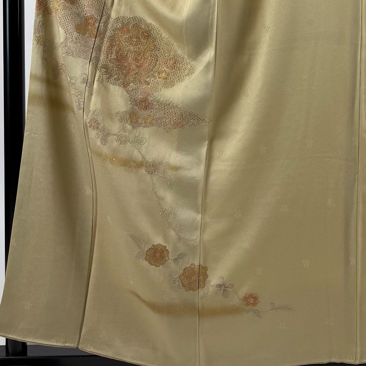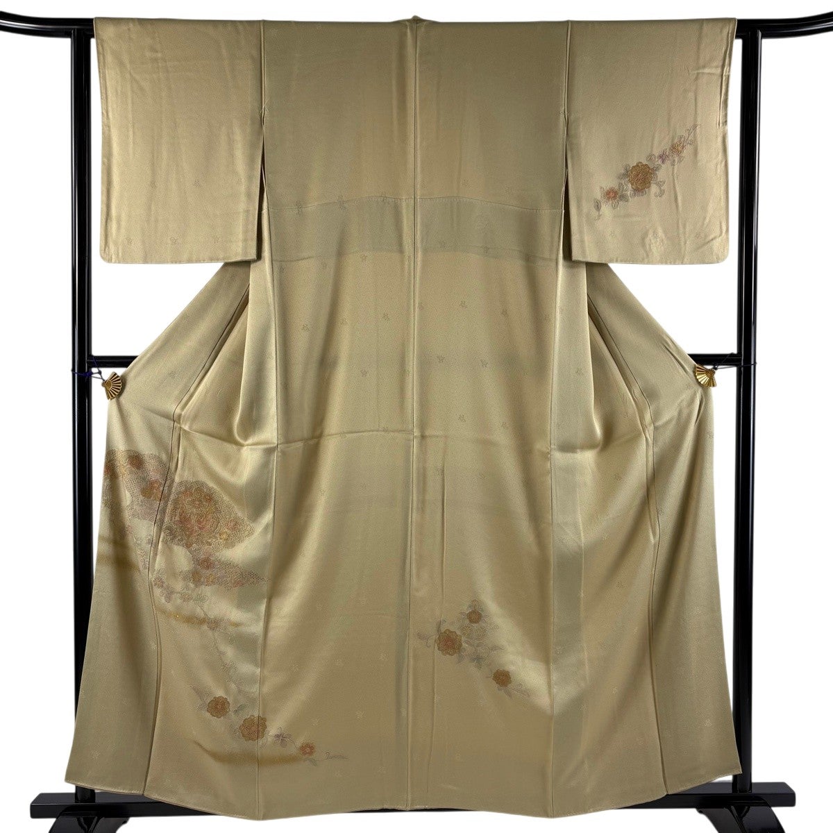 他の画像を見る 30%OFF 【美品】 訪問着 身丈161cm 裄丈65cm M 袷 袋帯セット 菊 枝梅 金銀彩 ぼかし 抹茶色 正絹 秀品 一つ紋 K30 当店通常価格 ¥ 20,800 ¥ 14,560 税込