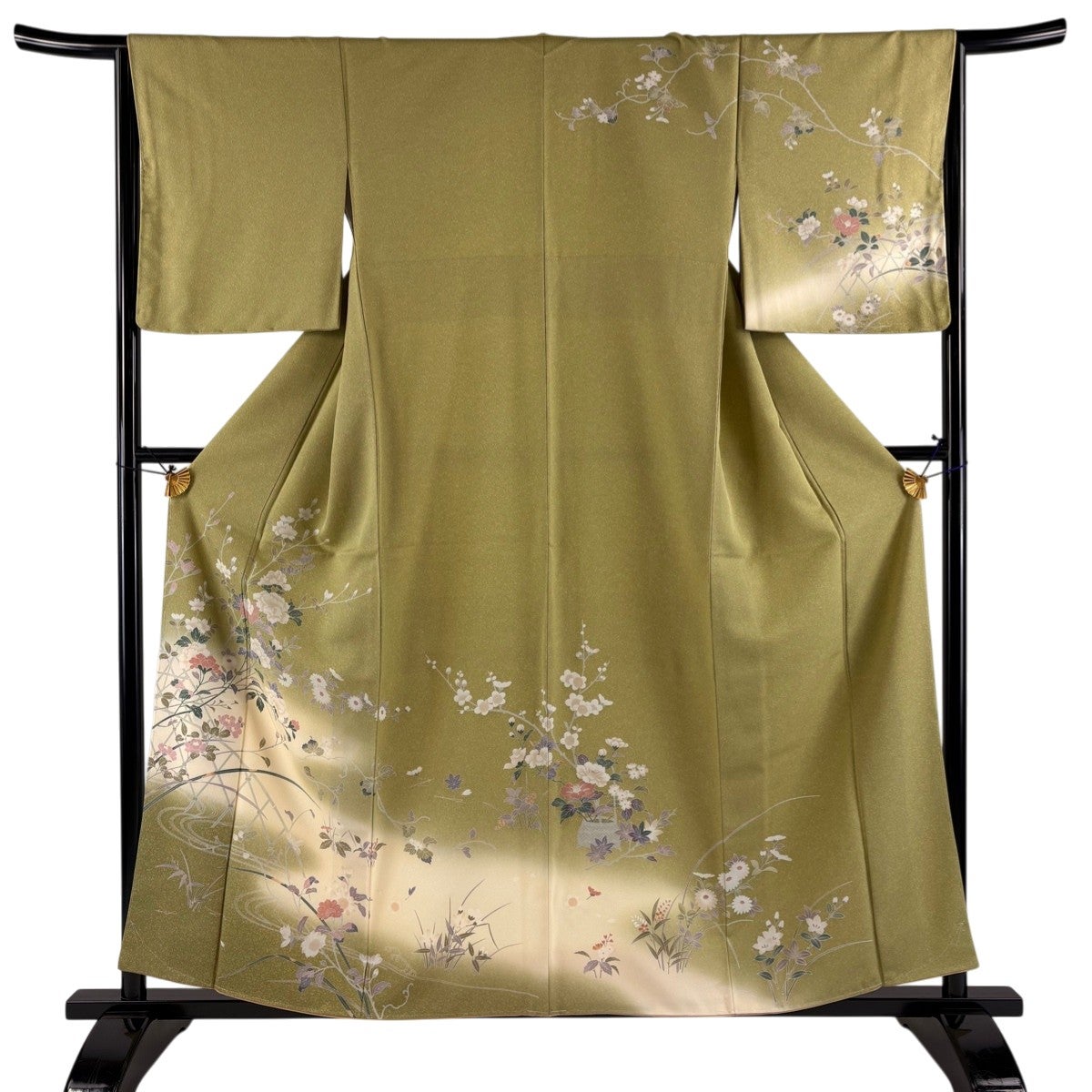 他の画像を見る 50%OFF 付下げ 身丈160cm 裄丈67.5cm L 袷 翠山工房 やまと 落款あり 辻が花 ぼかし 抹茶色 正絹 名品 K50 当店通常価格 ¥ 17,800 ¥ 8,900 税込