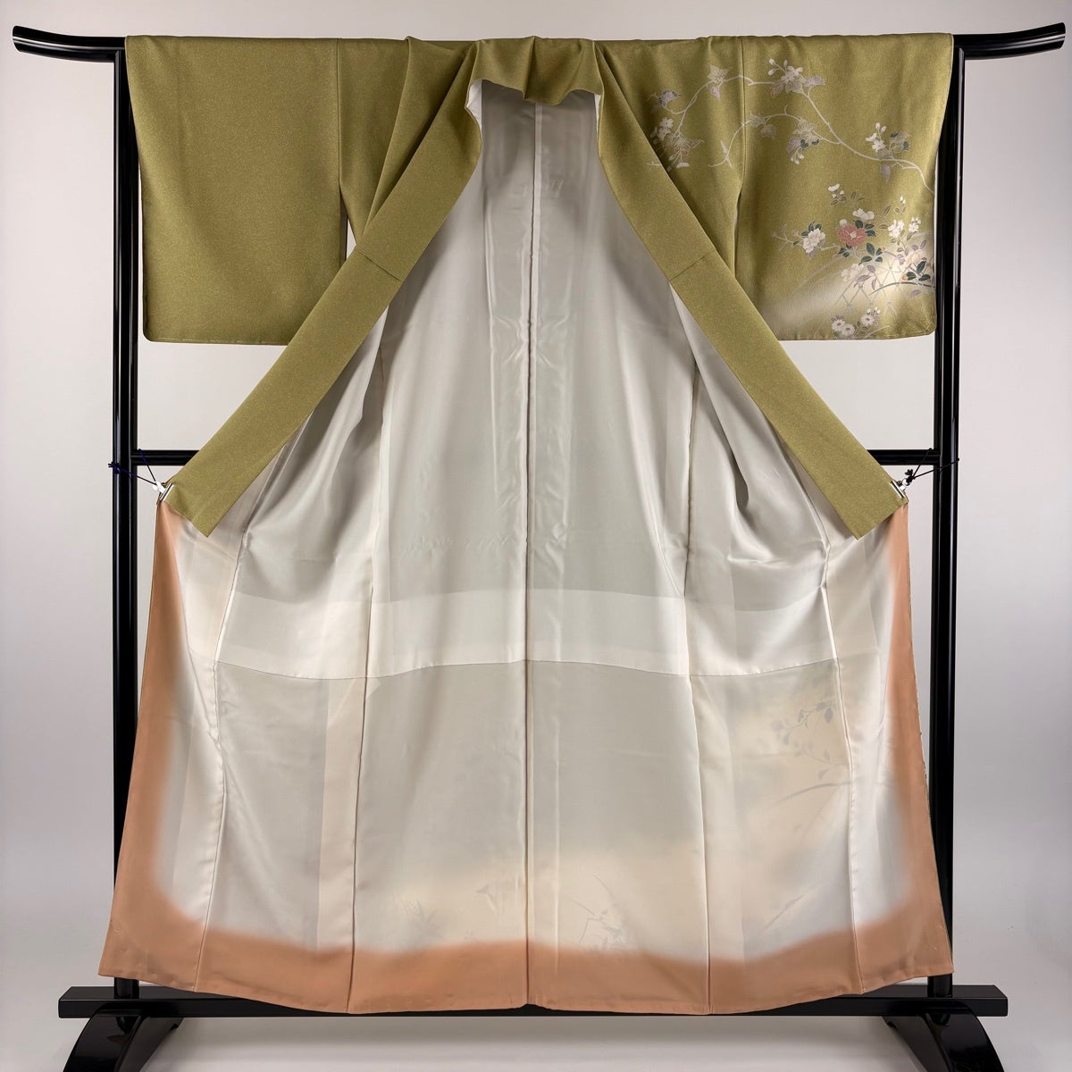 他の画像を見る 50%OFF 【美品】 付下げ 身丈157.5cm 裄丈63cm S 袷 牡丹 草花 染め分け ぼかし 抹茶色 正絹 秀品 一つ紋 K50 当店通常価格 ¥ 8,800 ¥ 4,400 税込