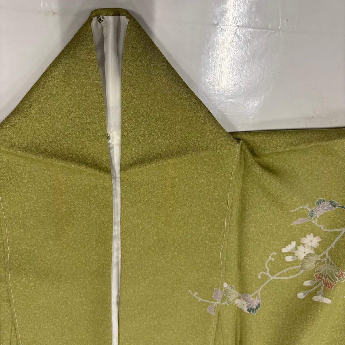 他の画像を見る 30%OFF 付下げ 身丈150cm 裄丈62cm S 袷 渡辺雪三郎 落款あり 花びら 地紋 抹茶色 正絹 名品 一つ紋 K30 当店通常価格 ¥ 15,800 ¥ 11,060 税込