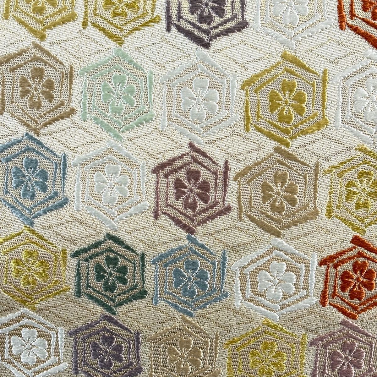 袋帯 秀品 花丸文 草花 金銀糸 箔 金色 六通 正絹