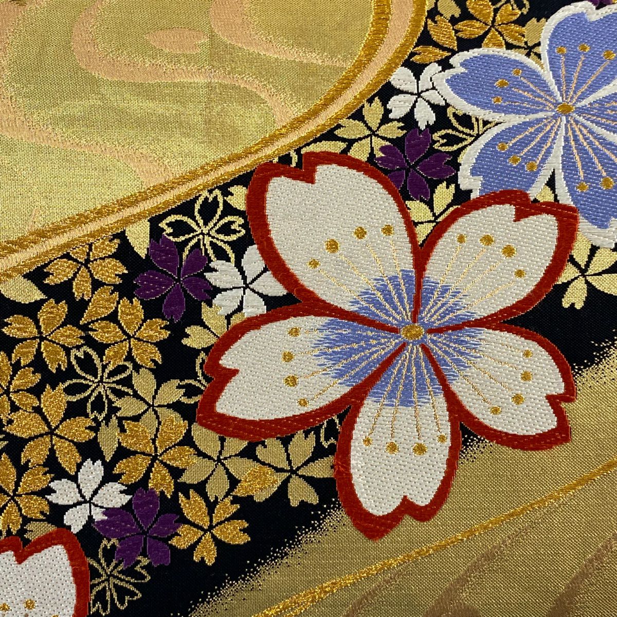【美品】 袋帯 秀品 笠松 桜 箔 金色 六通 正絹