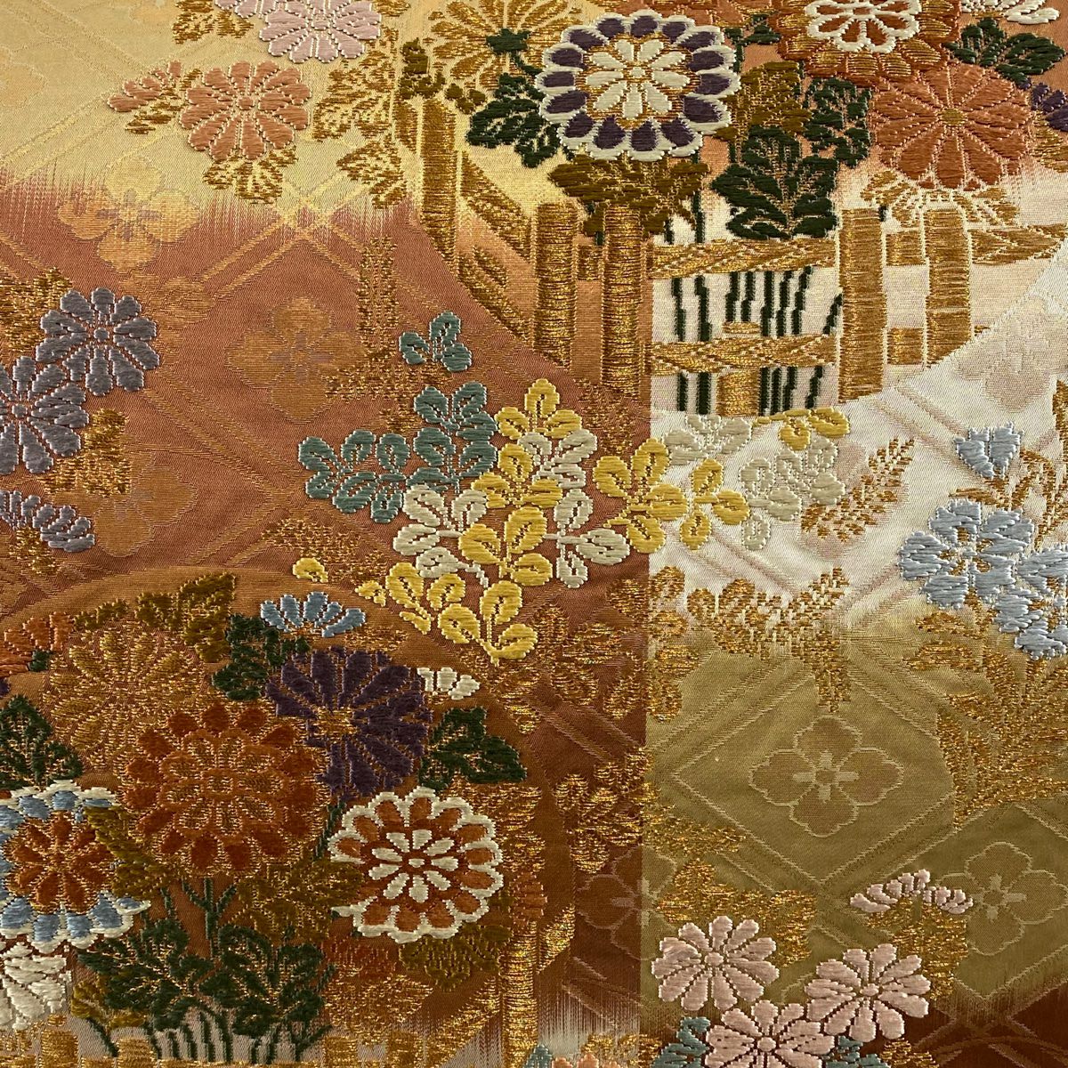 袋帯 美品 逸品 河村織物 落款あり 手織り 春秋天井絵文 春秋天井絵文 華文 金糸 箔 金色 六通 正絹