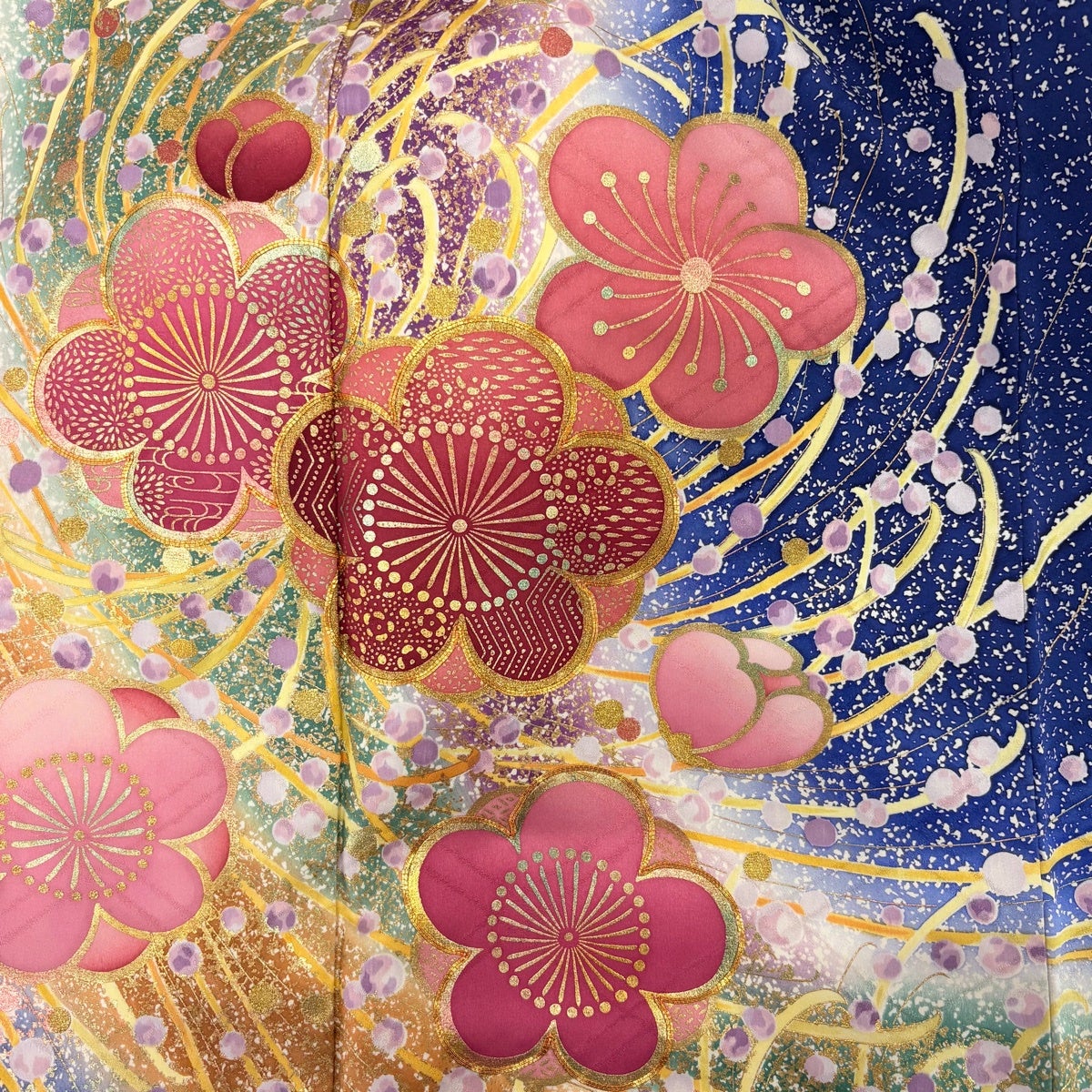 【美品】 振袖 身丈164.5cm 裄丈65.5cm M 袷 鴛鴦 菖蒲 染め分け ぼかし 紺色 正絹 名品