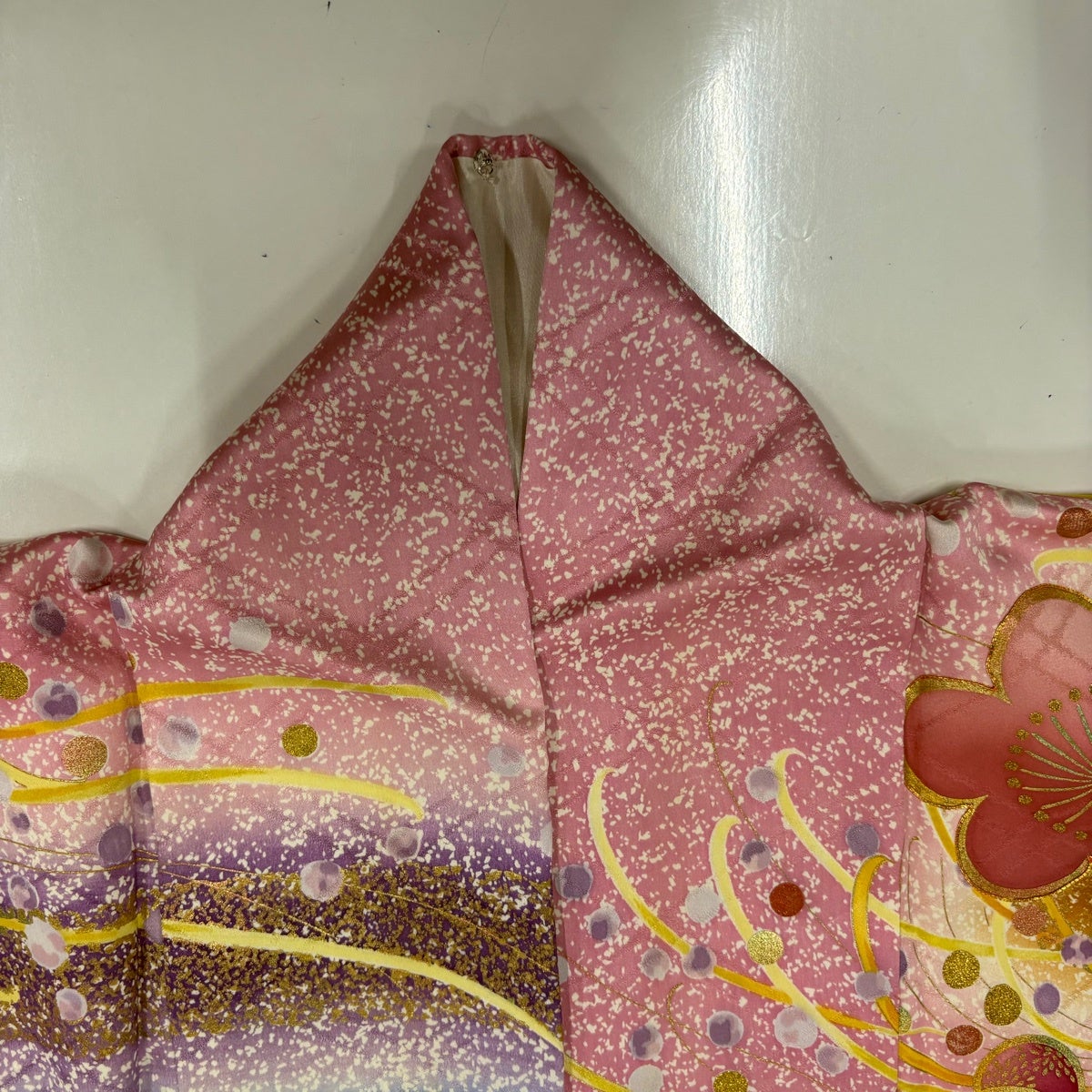 振袖 身丈164.5cm 裄丈68.5cm L 袷 御所車 松竹梅 金糸 金銀彩 サーモンピンク 正絹 秀品