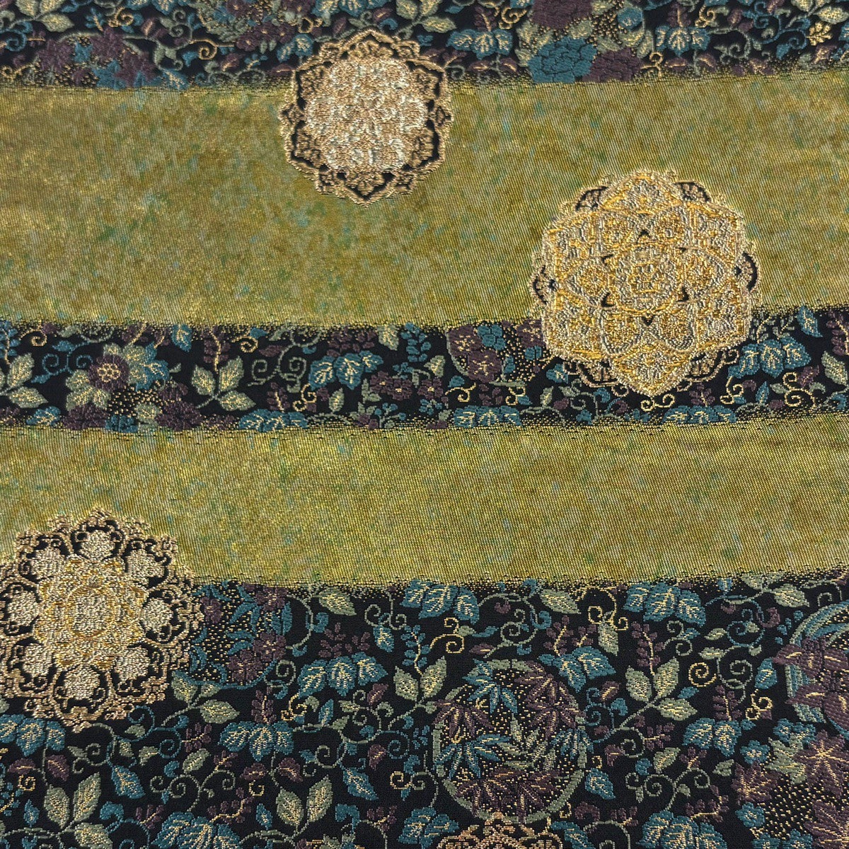 【美品】 袋帯 秀品 華文 花唐草 金糸 箔 金色 六通 正絹