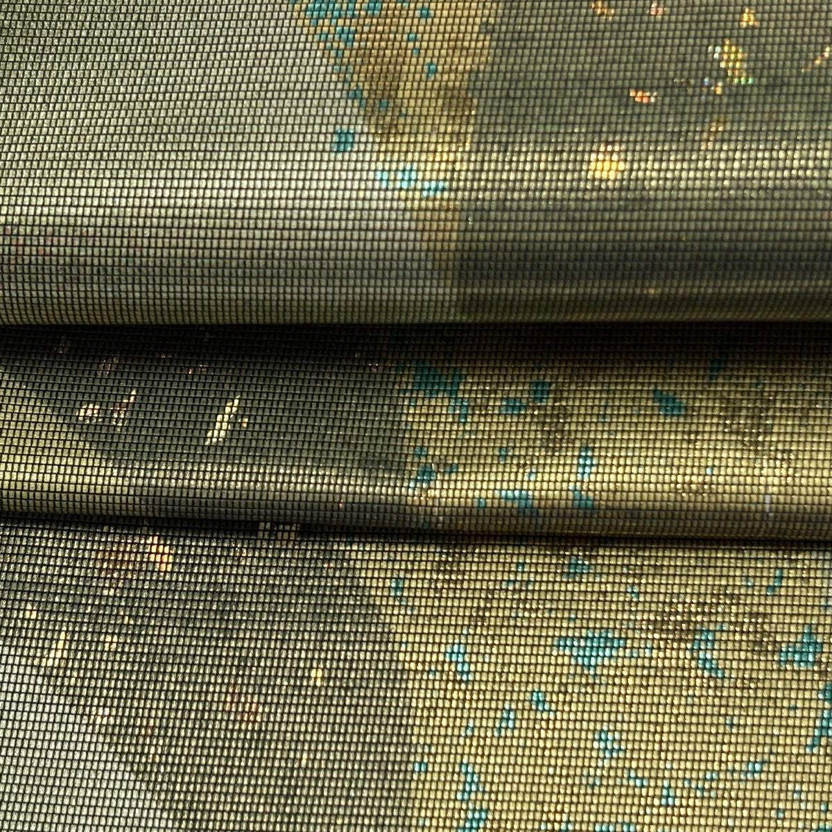 袋帯 秀品 波頭扇面文 草花 箔 唐織 灰色 六通 正絹