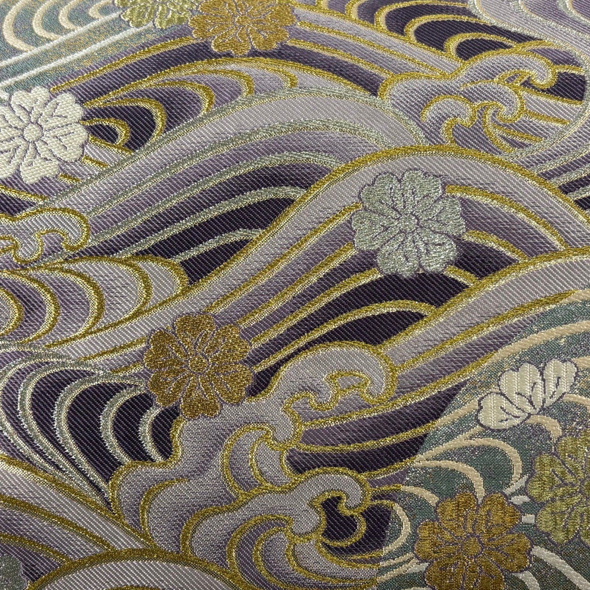 袋帯 秀品 草花 波 箔 金糸 金色 六通 正絹