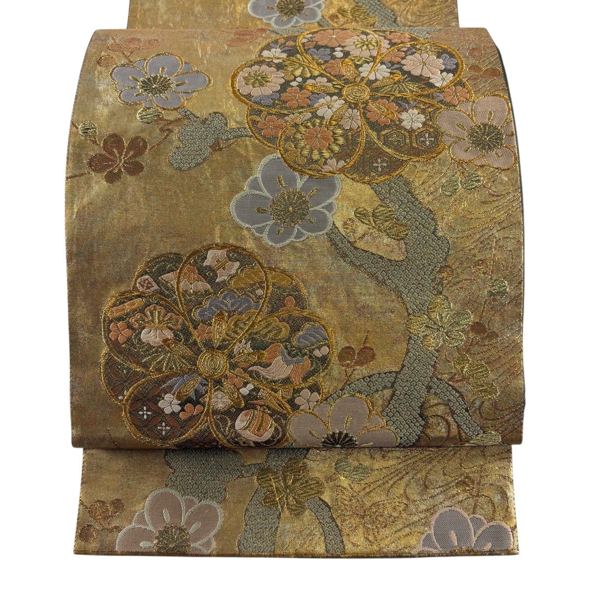 【美品】 袋帯 秀品 証紙あり 振袖向き 梅 花びら 金糸 箔 金色 六通 正絹