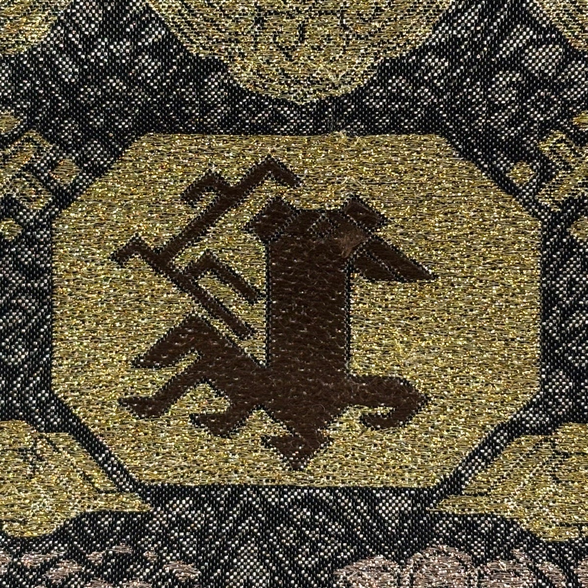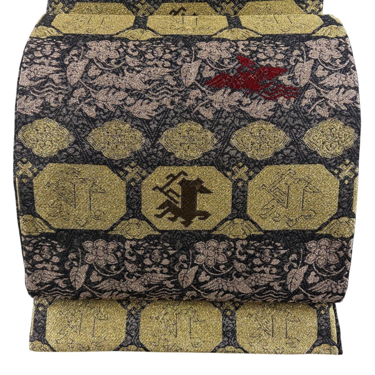 袋帯 秀品 花鳥 幾何学模様 箔 黒 六通 正絹