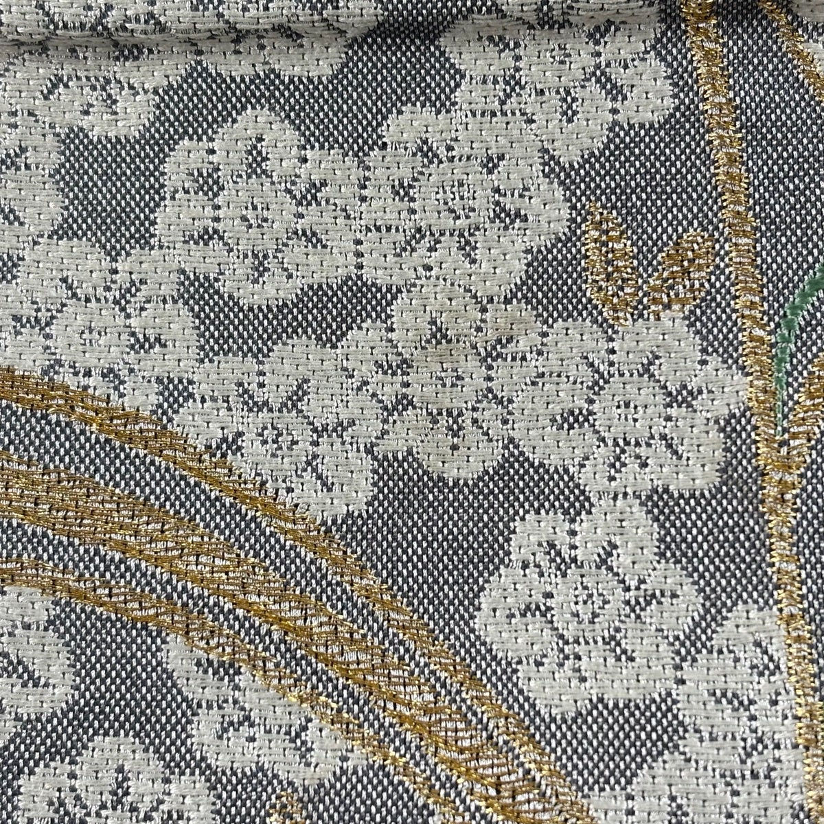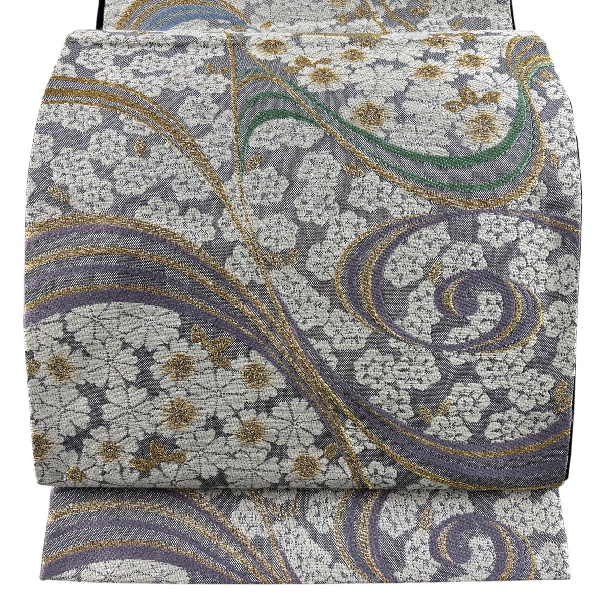 袋帯 秀品 草花 流水 金銀糸 灰色 六通 正絹