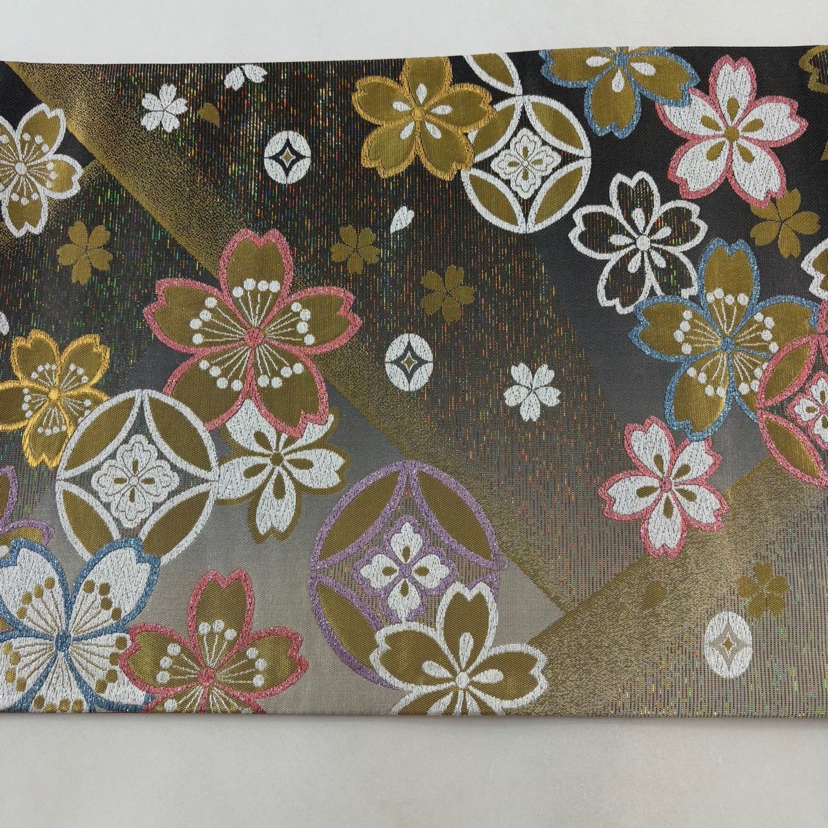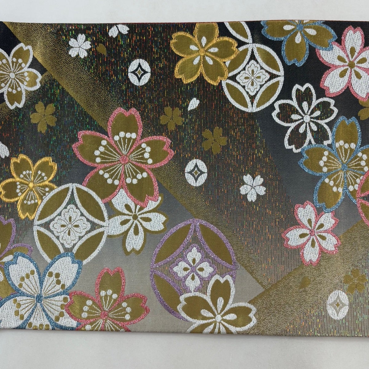 袋帯 秀品 桜 流水 金銀糸 箔 黒 六通 正絹