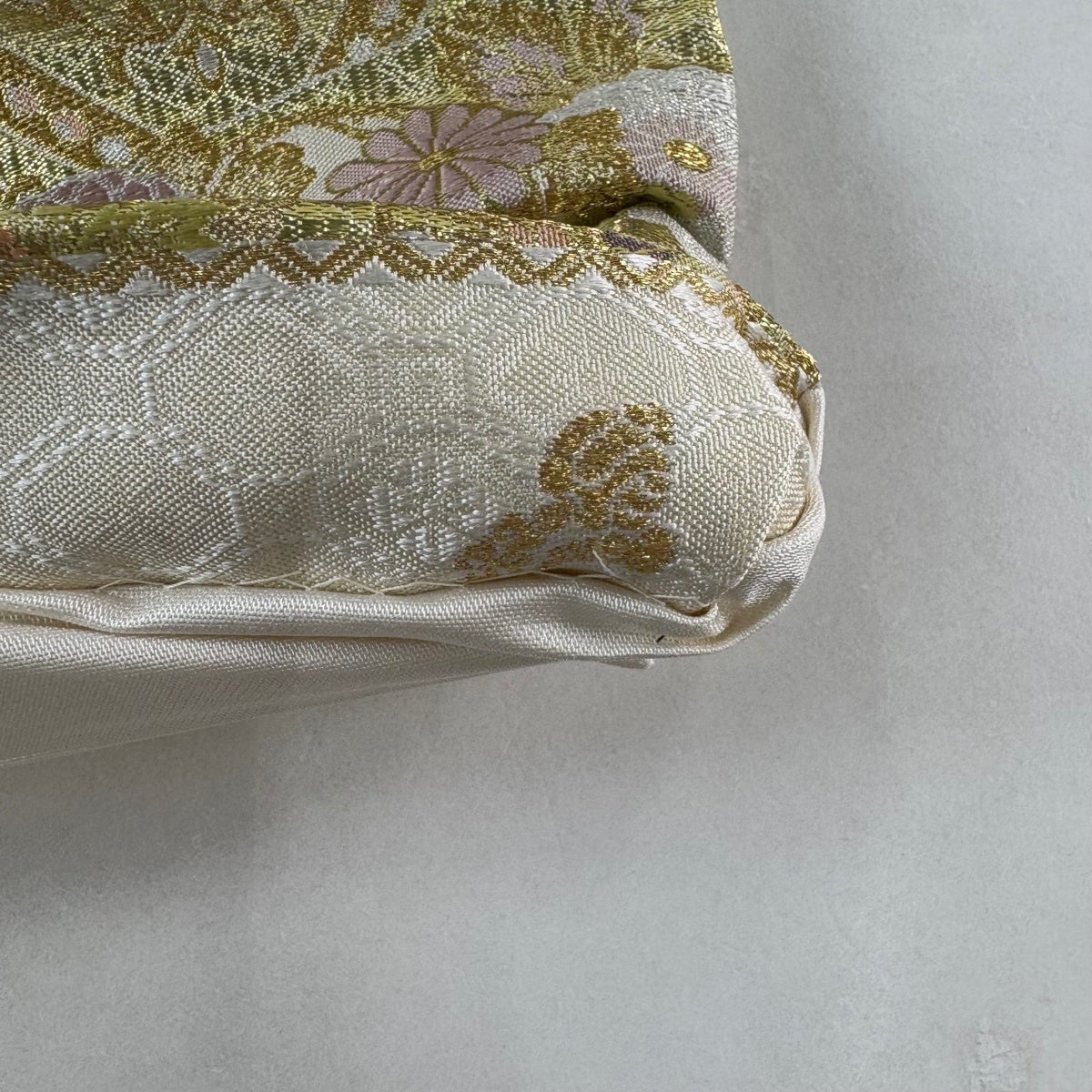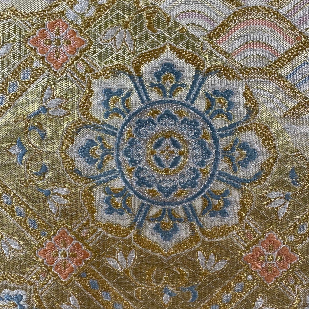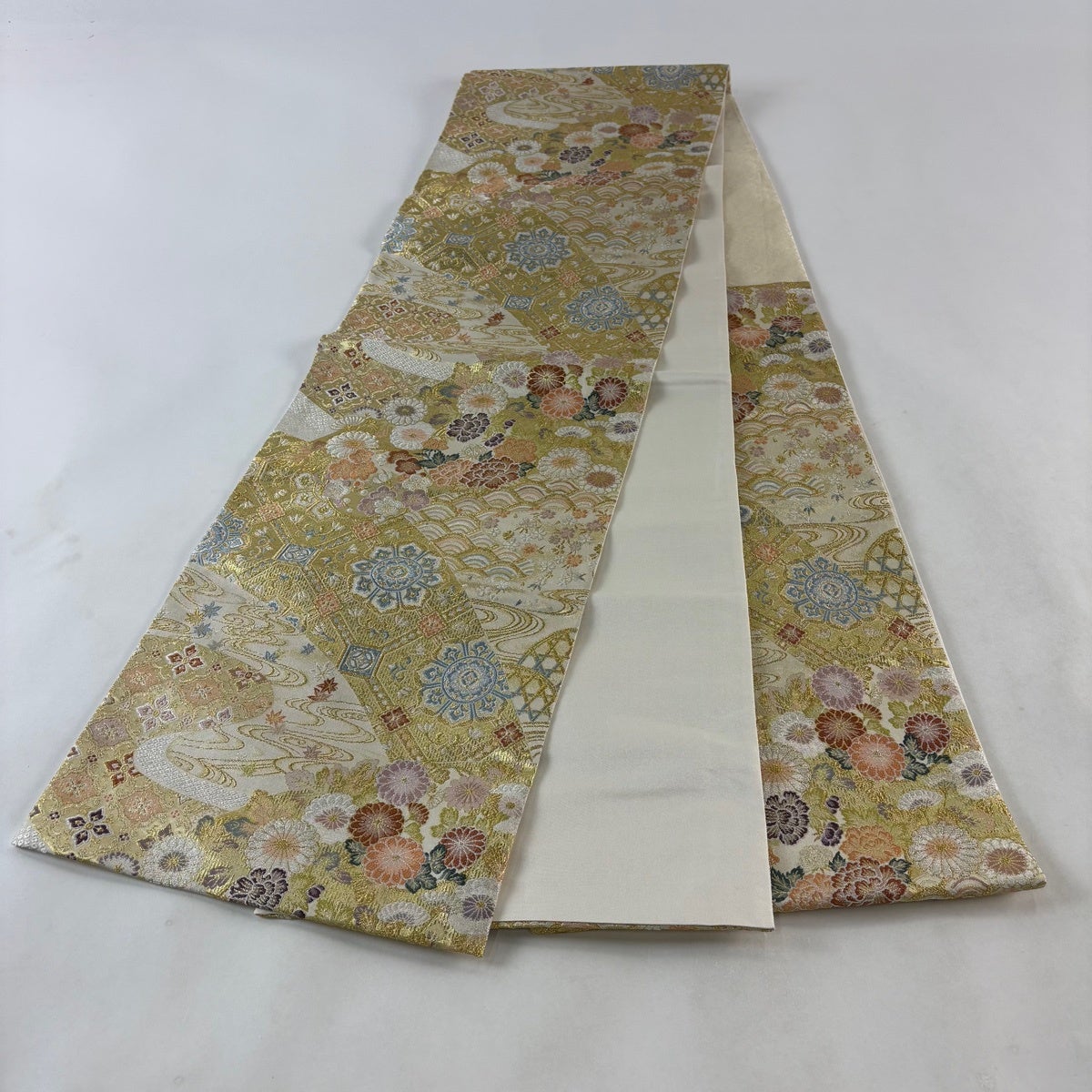 袋帯 秀品 菱文 桐 唐織 箔 クリーム 六通 正絹
