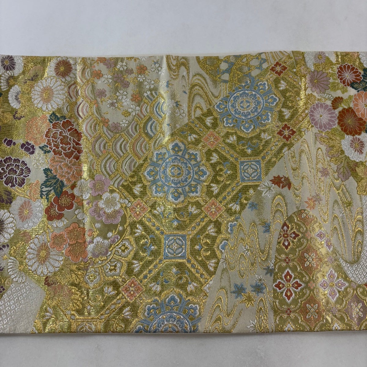 袋帯 秀品 桜 幾何学模様 金糸 箔 金色 六通 正絹