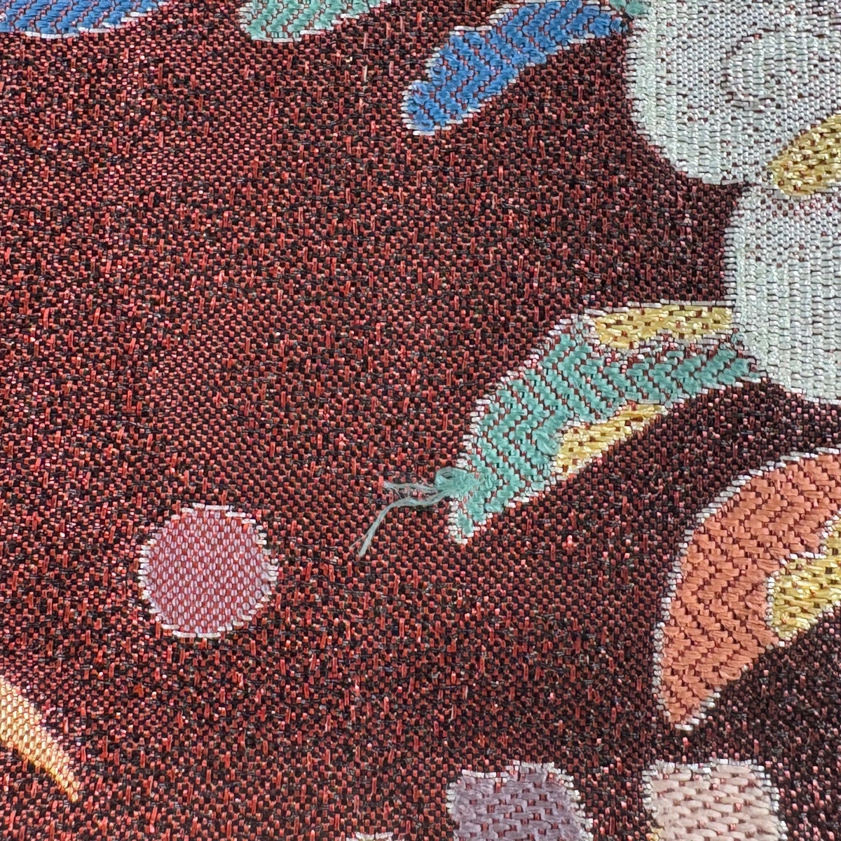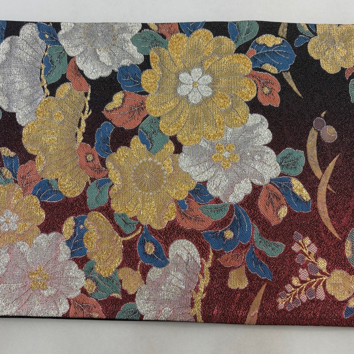 袋帯 逸品 花鳥 華文 金糸 刺繍 赤茶 全通 正絹