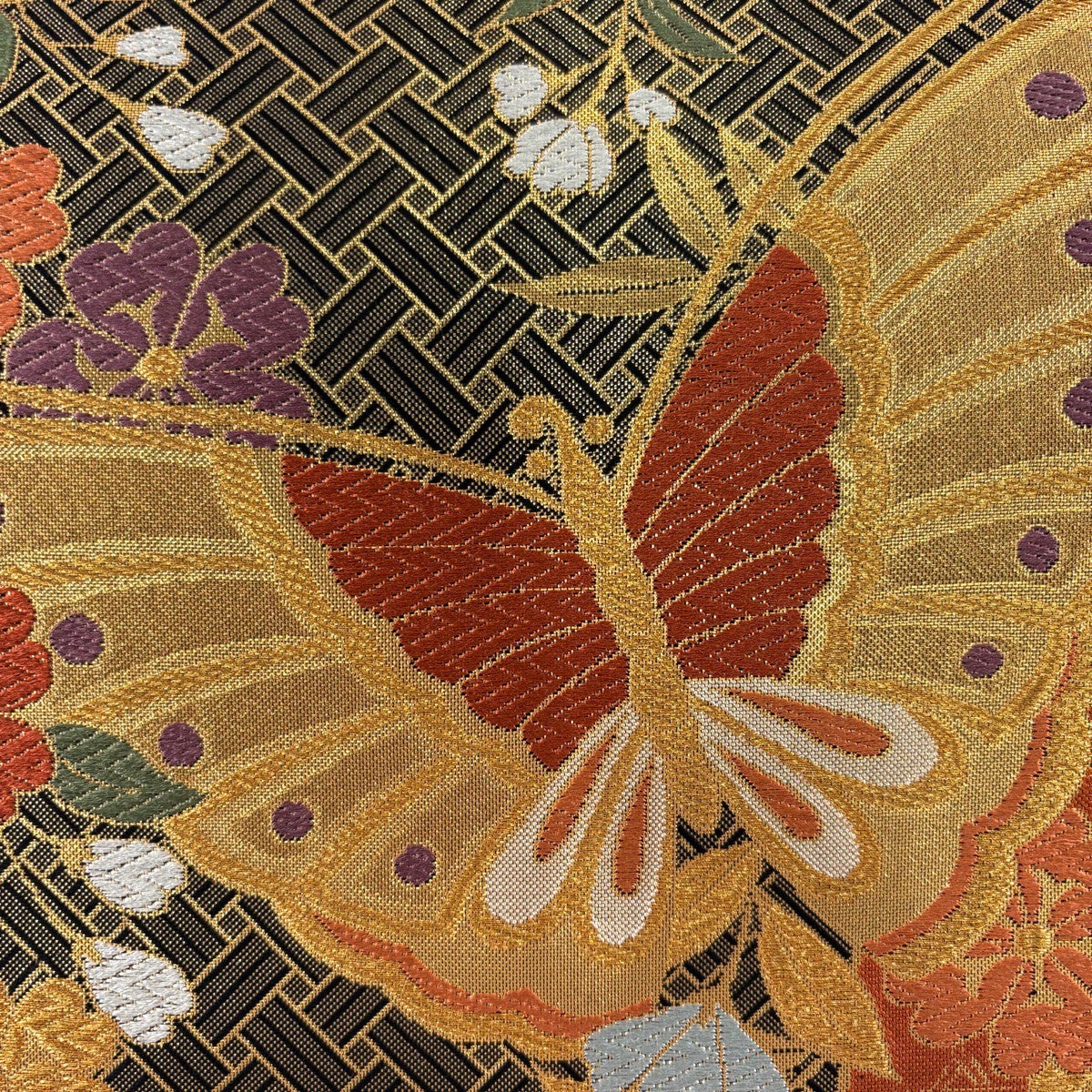 袋帯 秀品 蝶 箔 金糸 金色 六通 正絹