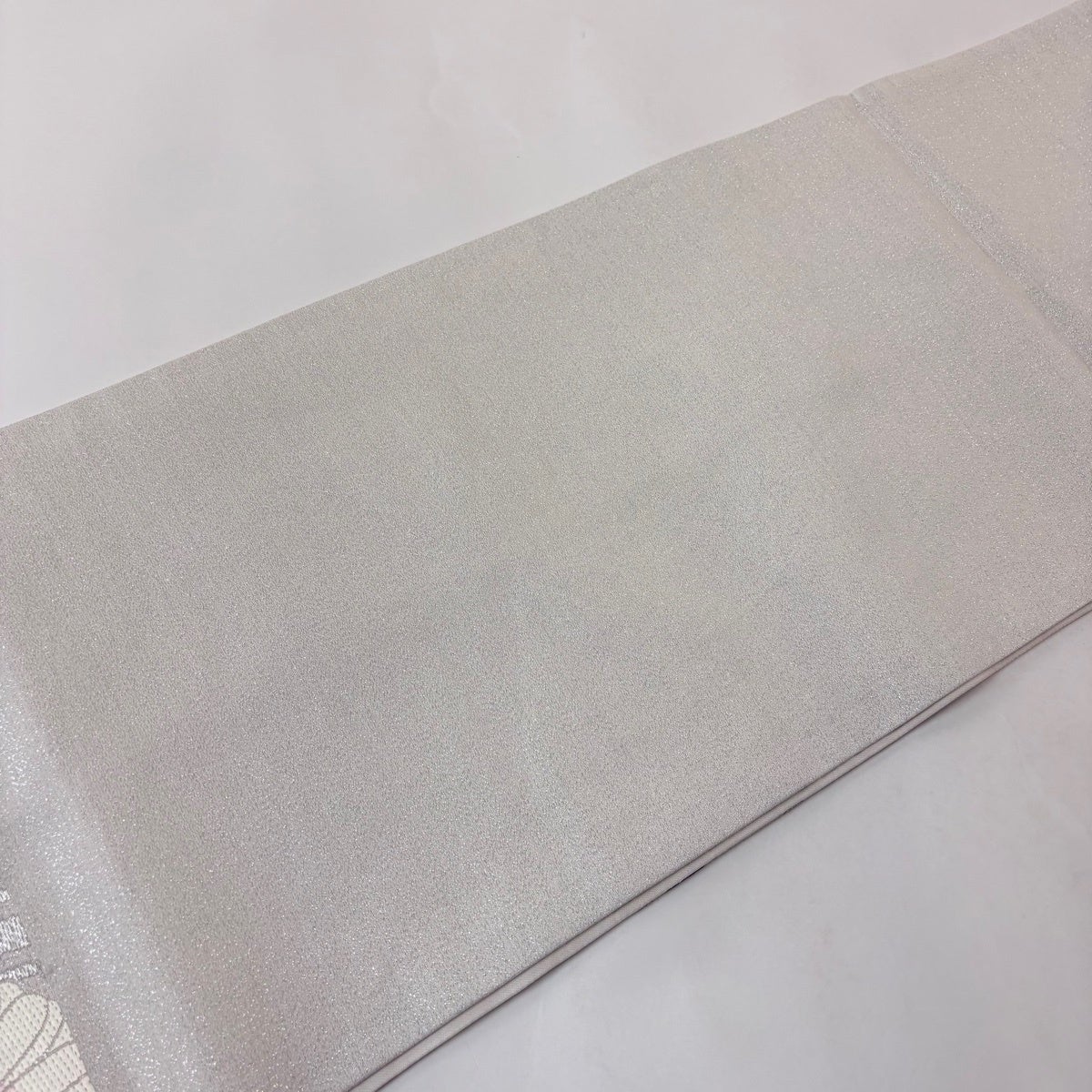 【美品】 袋帯 秀品 振袖向き 花 蝶 金糸 箔 銀色 六通 正絹