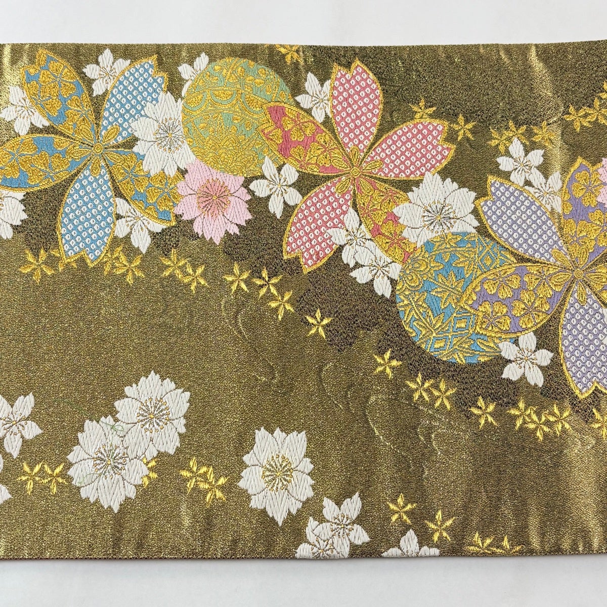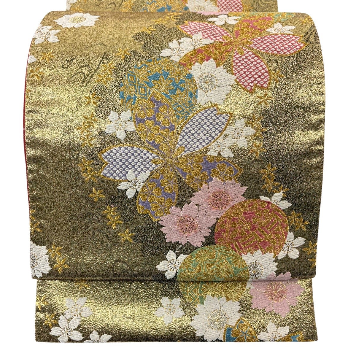 袋帯 秀品 桜 金糸 箔 金色 六通 正絹