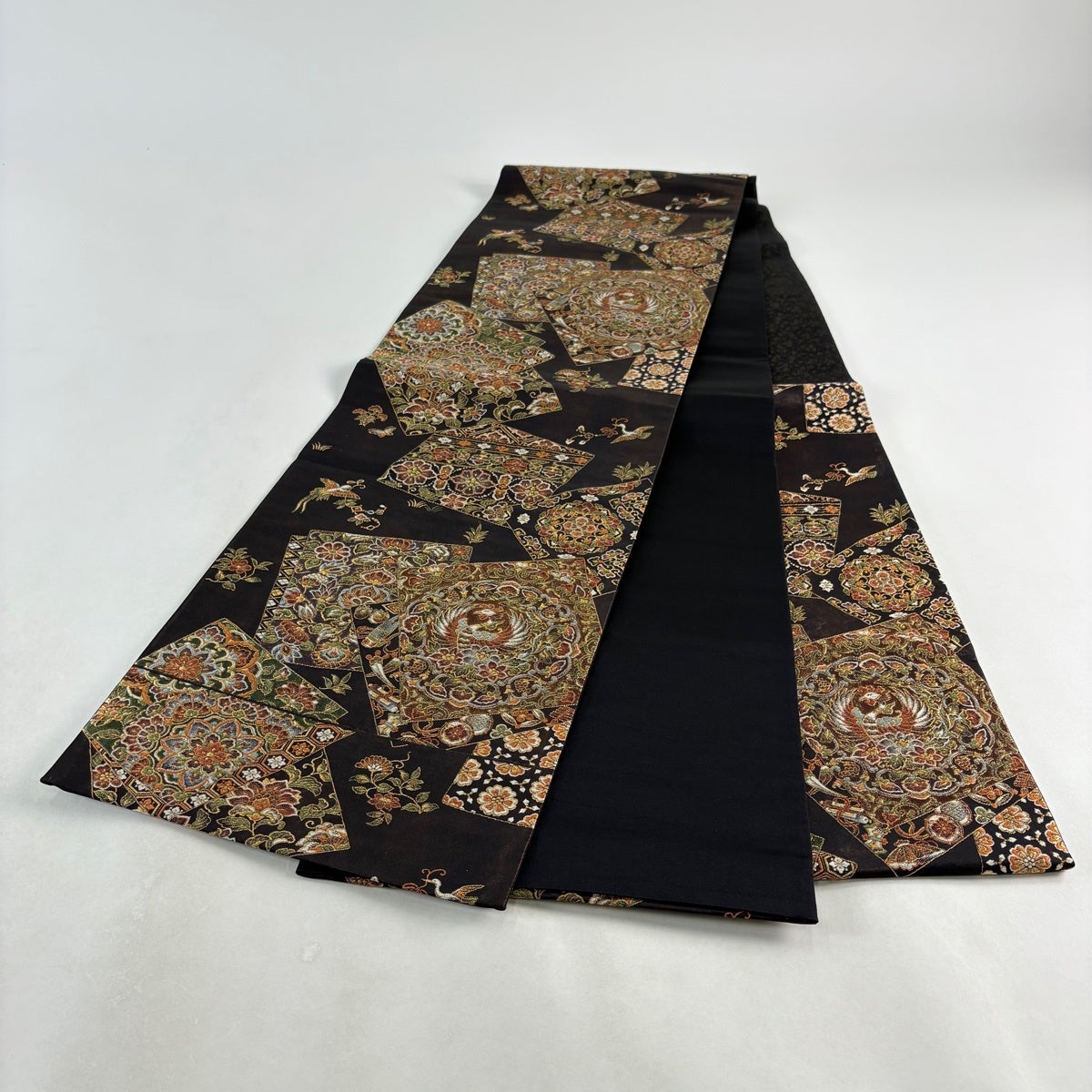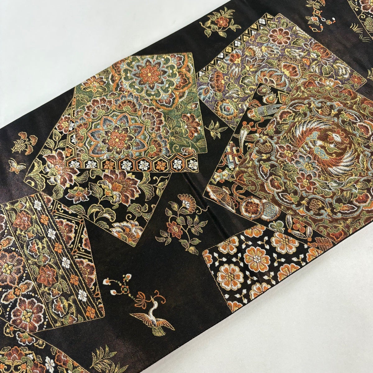 【美品】 袋帯 名品 鳳凰 花唐草 金糸 箔 赤黒 六通 正絹